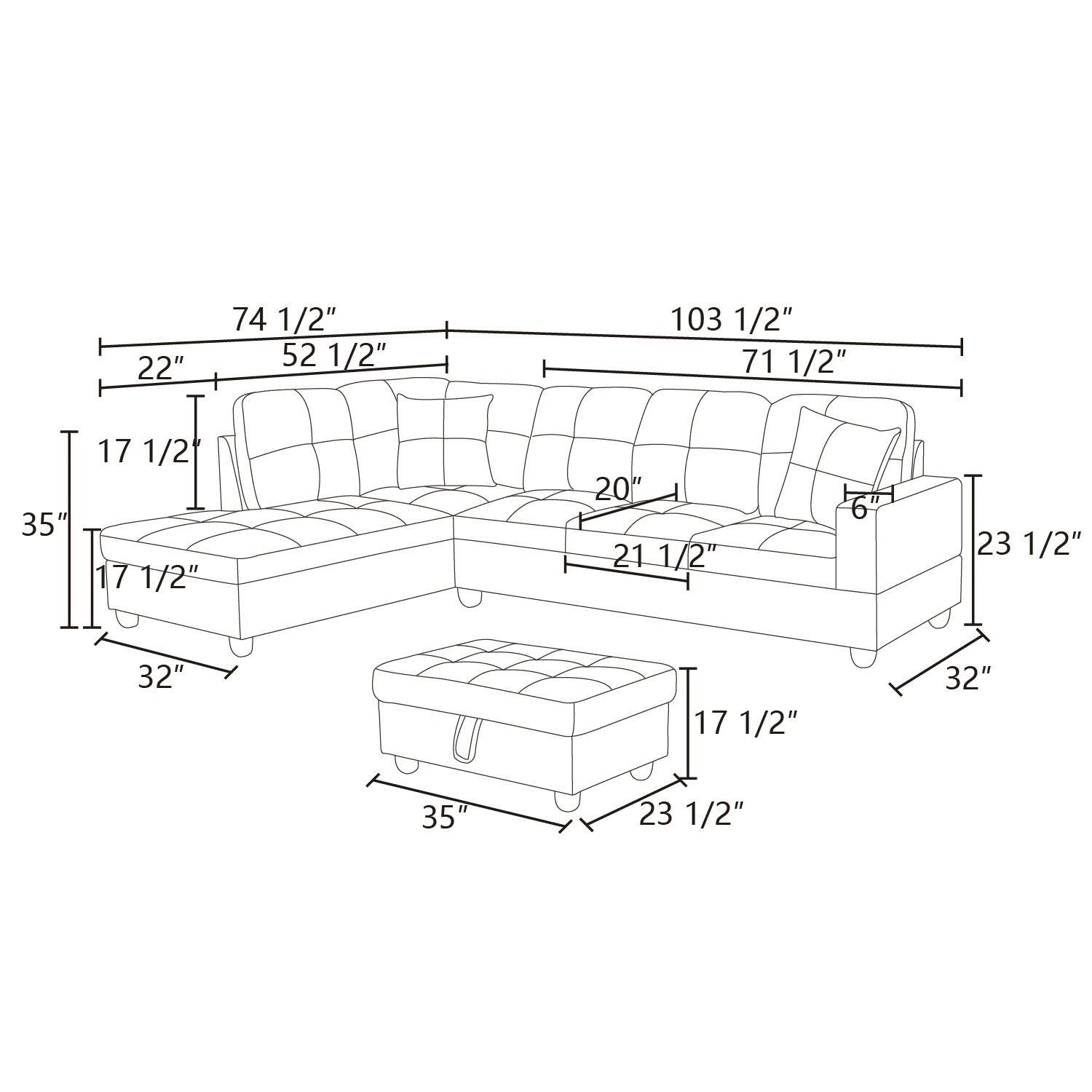 [Versatile and Functional Ottoman]: The included ottoman measures 35x23.5x17.5 inches, serving multiple purposes in your living space. Use it as a footrest, extra seating, or even as a makeshift coffee table in the center of your room.