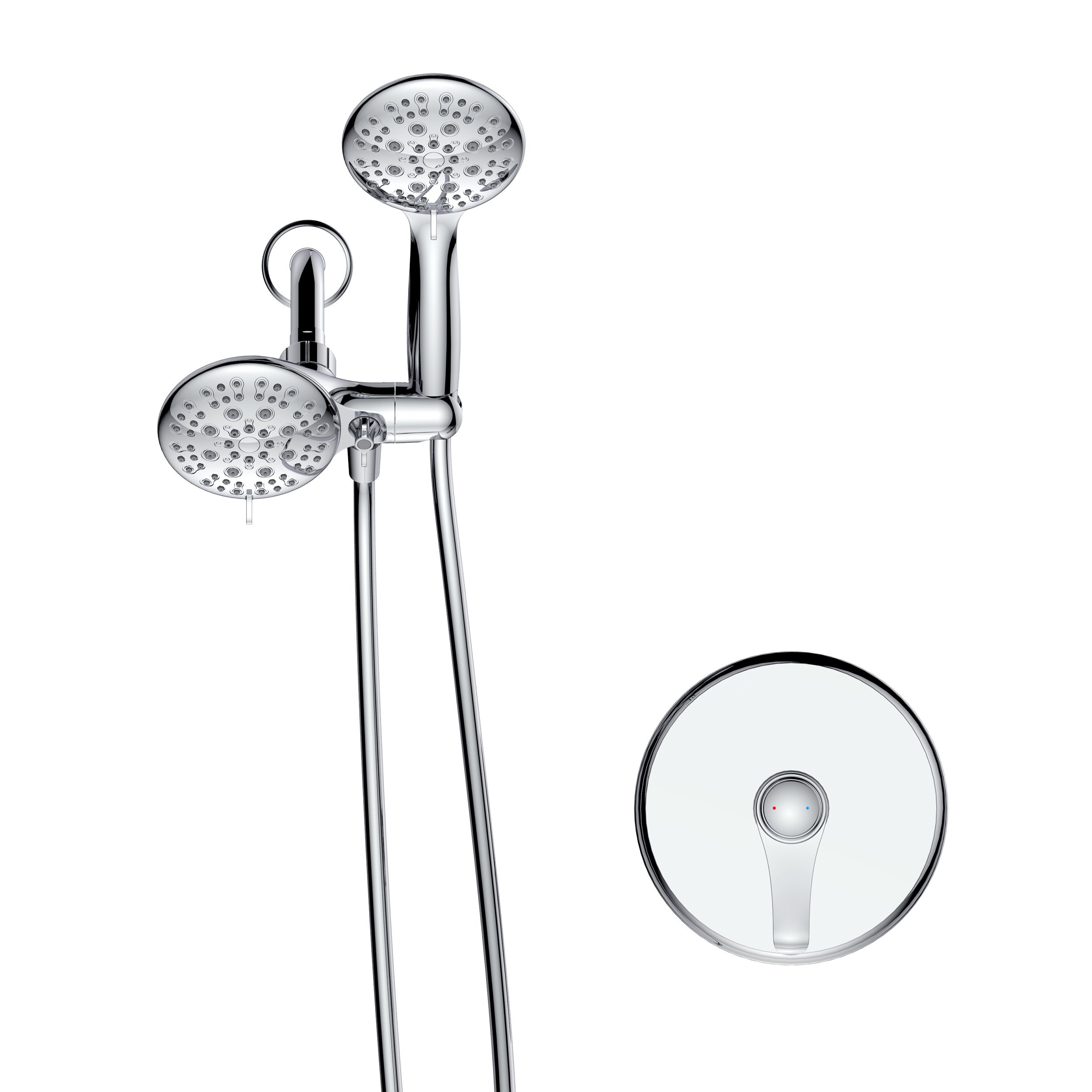 Large Amount of water Multi Function Dual Shower Head - Shower System with 4." Rain Showerhead, 6-Function Hand Shower, Chrome