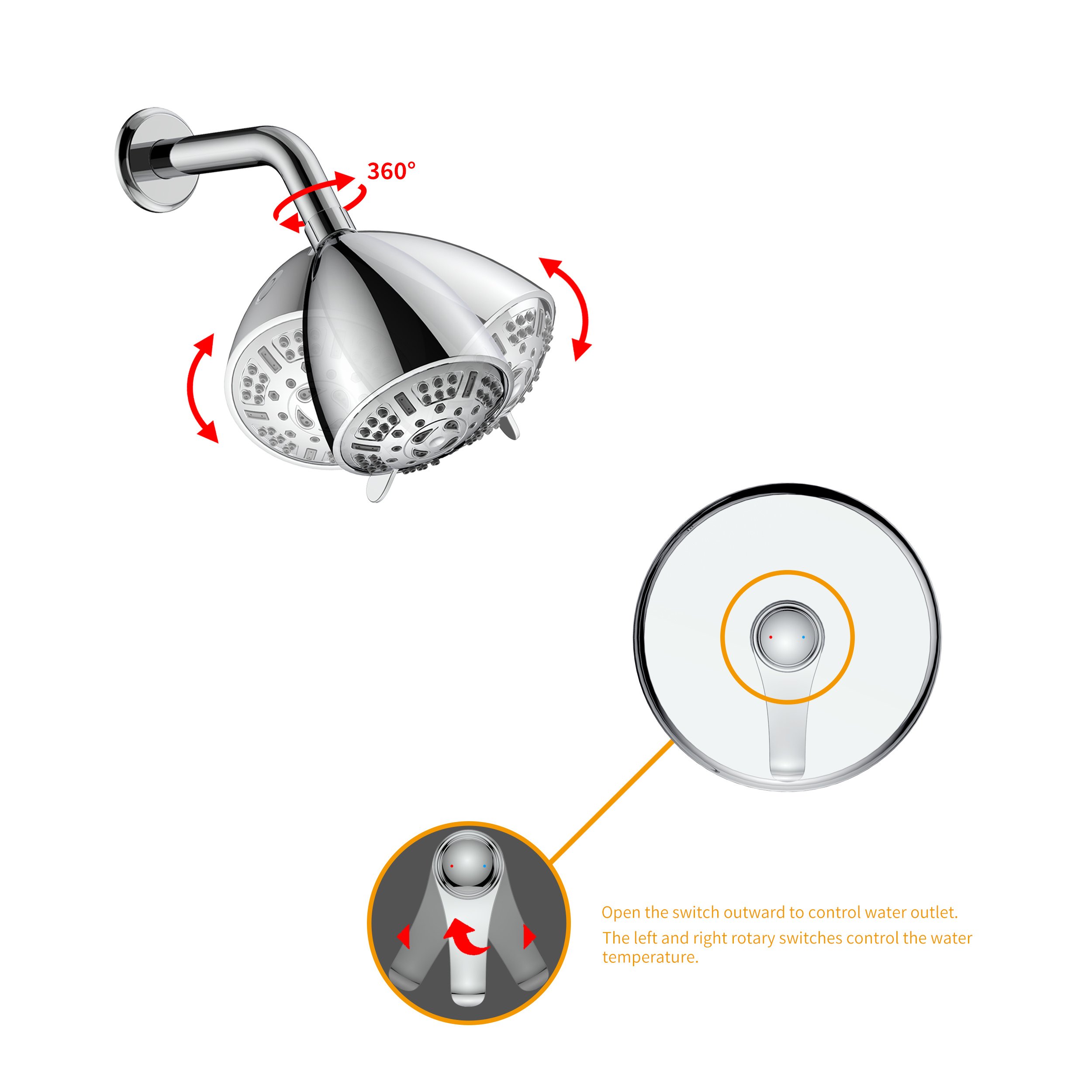 ·The rain shower head can be adjusted to any angle according to your needs.·Made of soft silicone material, you can clean the blockage and scale of the nozzle just by touching it with your hands.The pressure balance valve chamber monitors the water pressure balance to avoid scalding, our mixing valve has an adjustable cold and hot water flow device and a check valve, which helps us to adjust the proper cold and hot water flow when necessary.This shower system can switch the water outlet mode through the knob (shower/hand shower, currently does not support the simultaneous water outlet of the shower and hand shower)