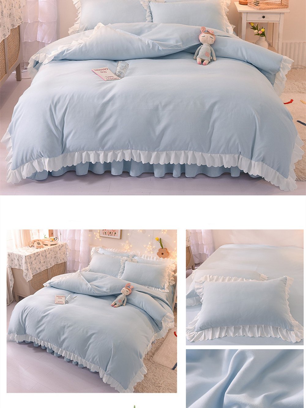 Princess Style Girl Brushed Multicolor 4-piece Set Quilt Cover Sheet Pillowcase Spring Autumn Winter Solid Fleece Thick Bedskirt