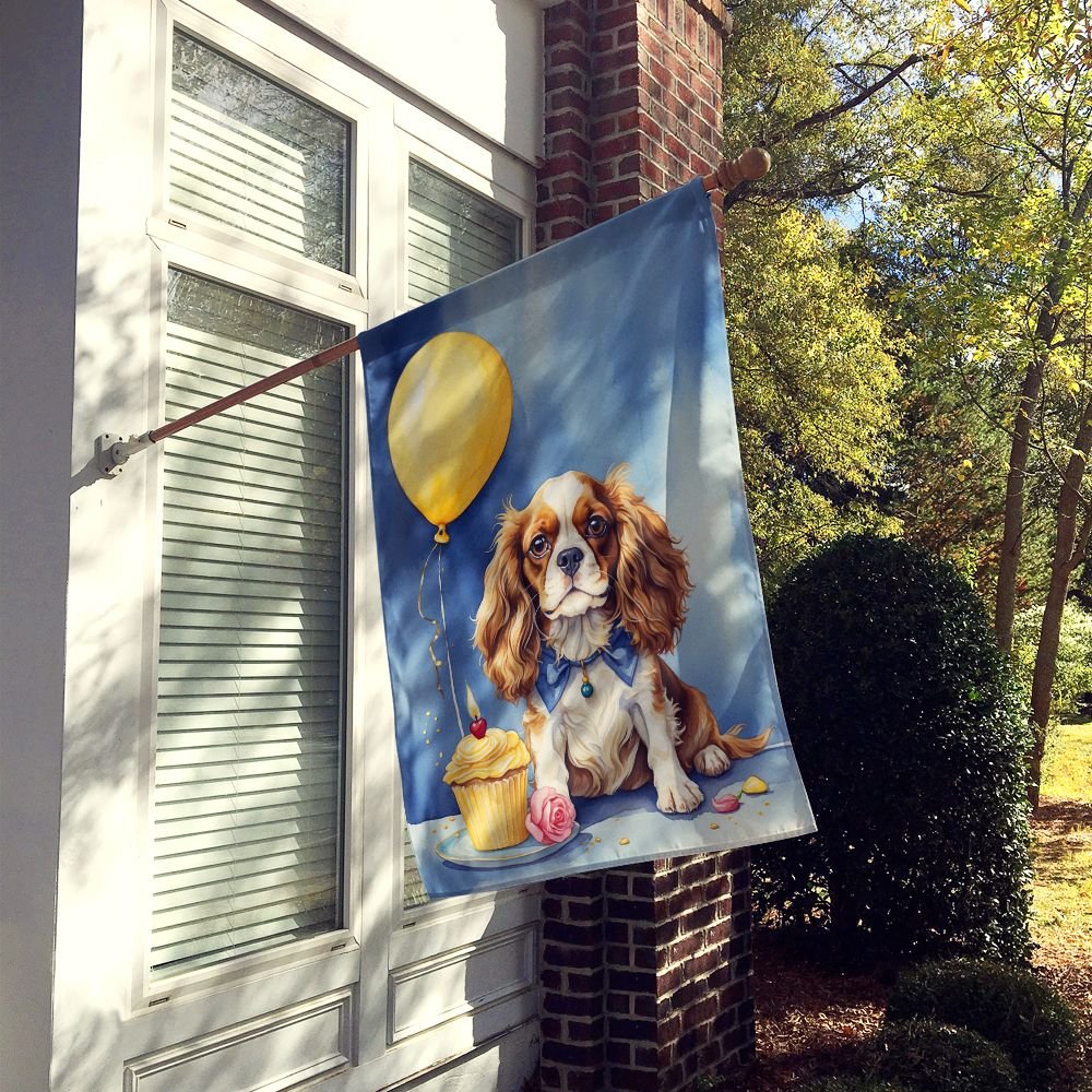 House Flag featuring breed specific Cavalier King Charles Spaniel artwork. Celebrate Birthday with this Birthday Large Flag. Presenting our Heavy Duty Polyester House Size Decorative Sleeve Pole Flag, a vibrant addition to enhance the aesthetic appeal of your home. This large decorative flag, measuring approximately 28 x 40 inches, offers ample coverage and visibility. Each flag is meticulously sewn and made individually, ensuring a unique piece that may slightly vary in size. It's a sleeve pole flag, designed to fit a standard decorative flag pole effortlessly. Please note that the flag pole and bracket are not included and should be purchased separately. What sets our flag apart is its dual-sided print. The design is mirrored on both sides of the fabric, allowing for uniform visibility regardless of the angle. Printed in full color, our flag showcases vibrant hues that truly stand out. To ensure lasting vibrancy and durability, the dyes are heat-set into the fabric. This ensures your flag remains bright and captivating through various weather conditions. Elevate the look of your home with our Heavy Duty Polyester House Size Decorative Sleeve Pole Flag!