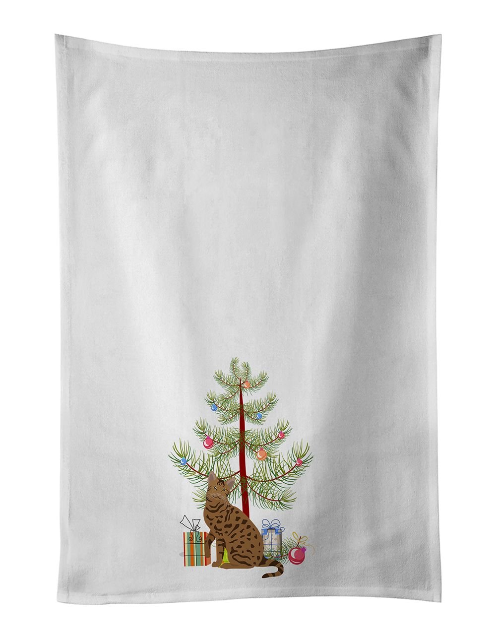 Kitchen Towel Set of 2 featuring breed specific Ocicat artwork. Celebrate Christmas with this Christmas Kitchen Cotton Towels. This Kitchen Towel Set of 2 is from Caroline's Treasures collection Merry Christmas Tree. Spruce up your kitchen decor with Caroline's Treasures Decorative White Kitchen Towel Set. This set of two dish towels showcases beautiful artwork from one of our talented artists, making them both practical and visually appealing. These towels are crafted from 100% cotton, offering excellent absorbency and durability, making them ideal for any kitchen task. Each white towel measures 19 inches by 28 inches, providing ample coverage for drying dishes or wiping up spills. The standout feature of these towels is the full-color artwork design printed on each one. They can serve as a vibrant accent in your kitchen, turning a functional item into a delightful piece of decor. When it comes to care, these towels are machine washable in cold water and can be dried on low heat. Remember to always use a pressing cloth when pressing the design, and avoid using bleach on the decorated towel. The Decorative White Kitchen Towel Set makes a great gift or a stylish addition to your own kitchen. This Kitchen Cotton Towels is from Caroline's Treasures Cats category of products.