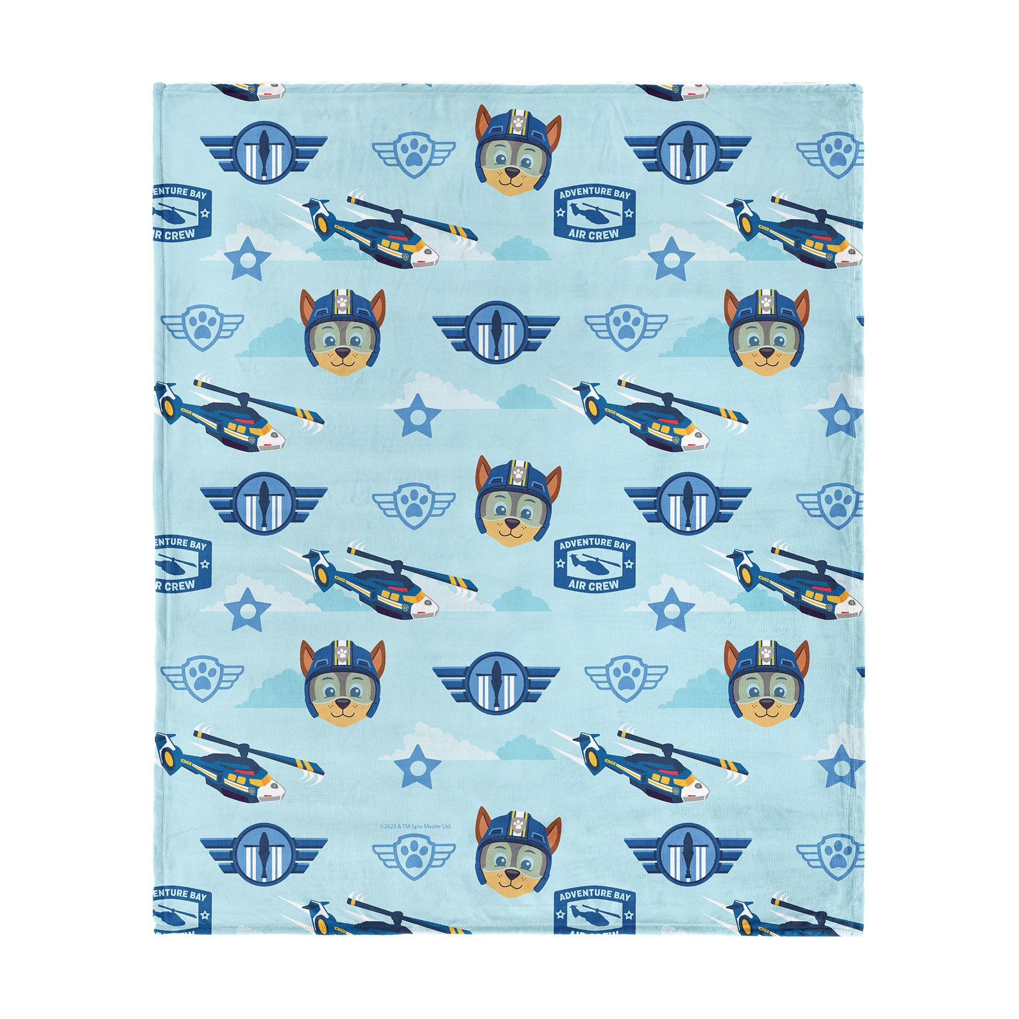 Featuring Chase in full flight gear and an all-over pattern of helicopters, wings, badges, and cloud accents, this design channels the excitement of Adventure Bay's sky missions.