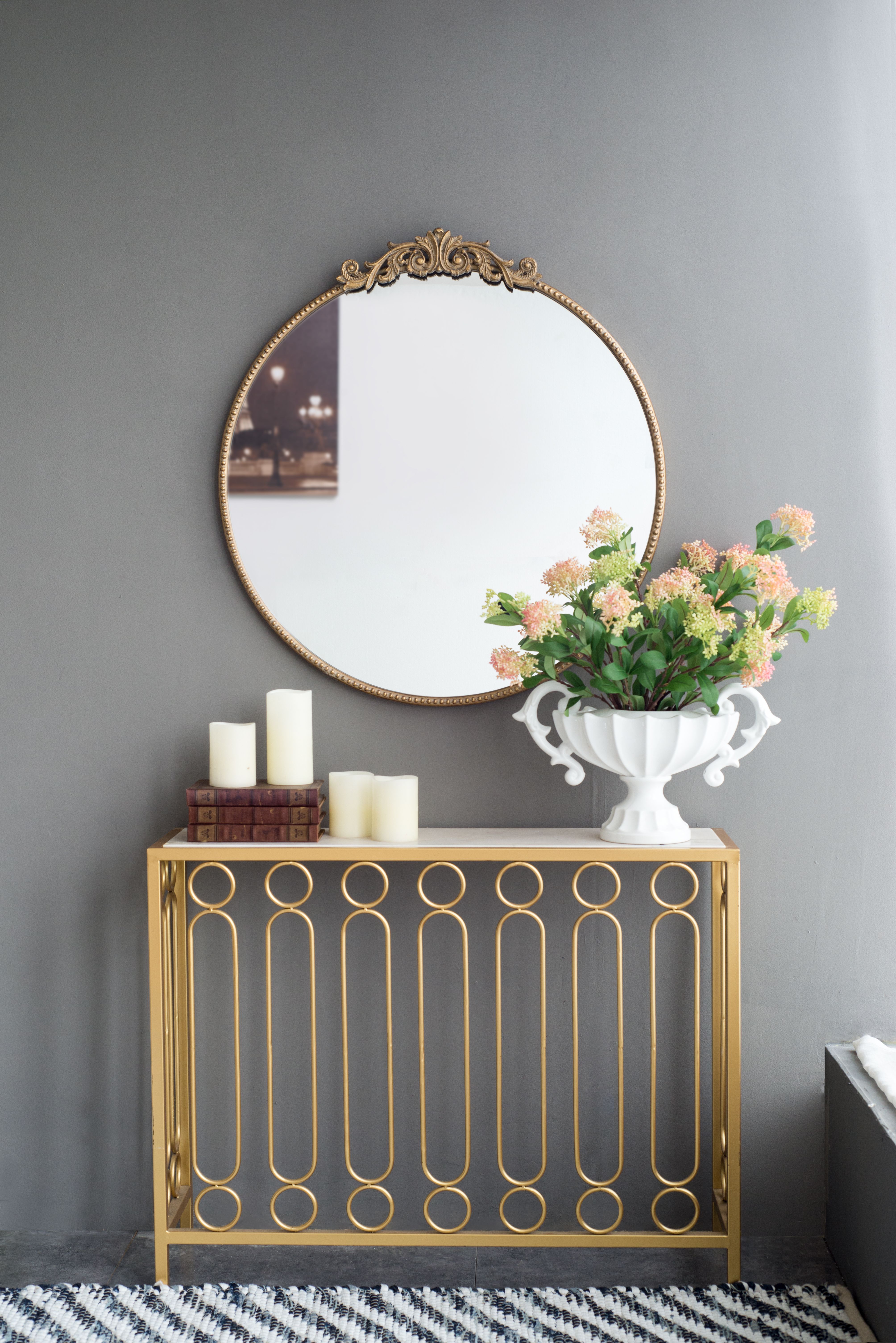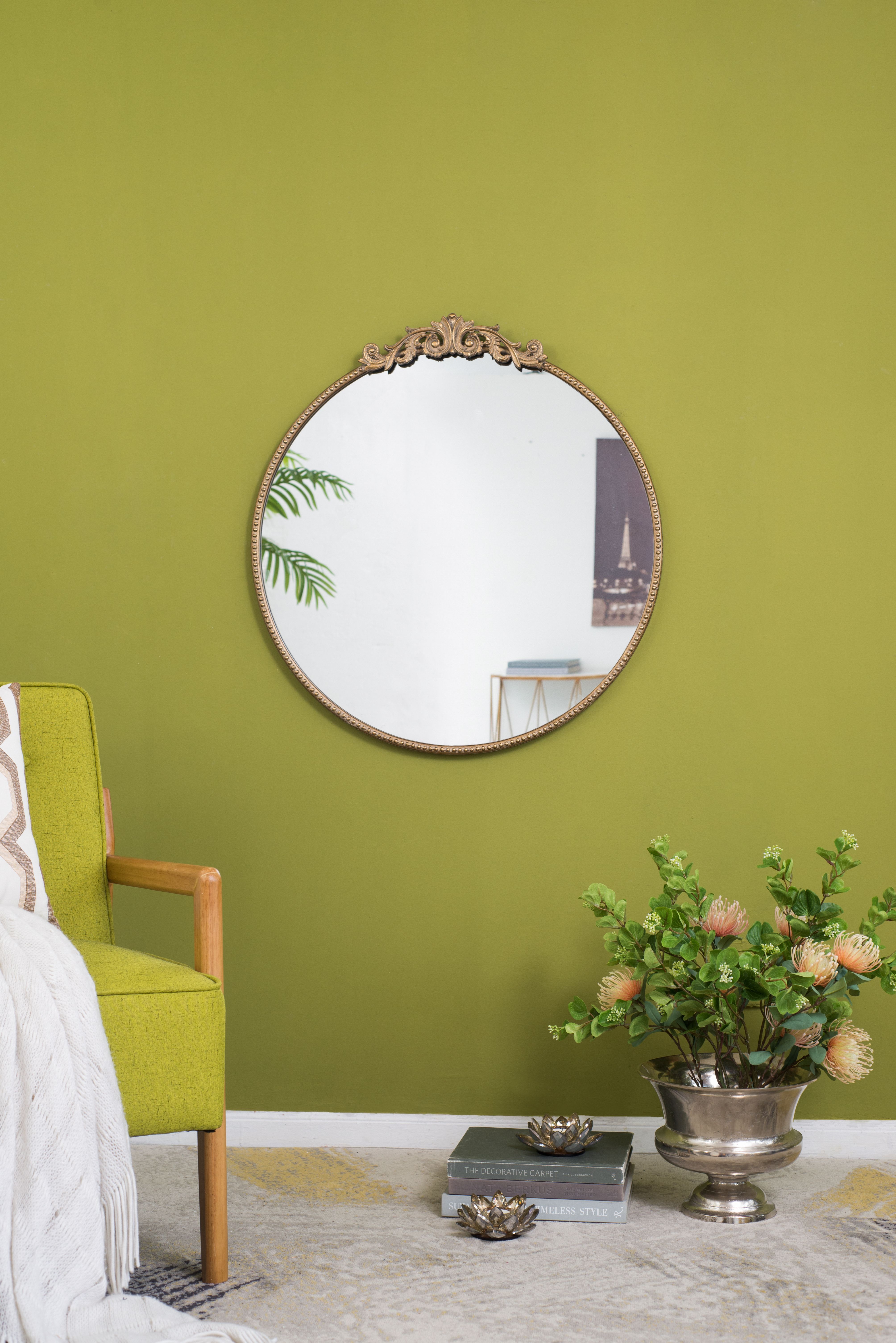 The classic round mirror with the gorgeous adornments on top that gives a vintage inspired look