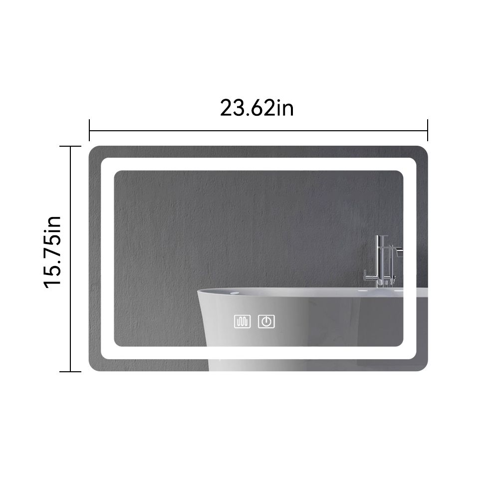 23*31 LED Lighted Bathroom Wall Mounted Mirror with High Lumen+Anti-Fog Separately Control