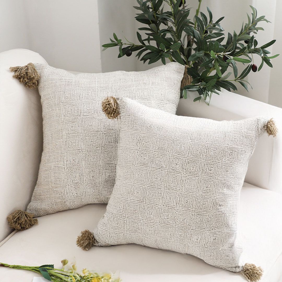✔ 2x SOGA 50cm Beige Textured Ribbed Cotton Pillow Covers
