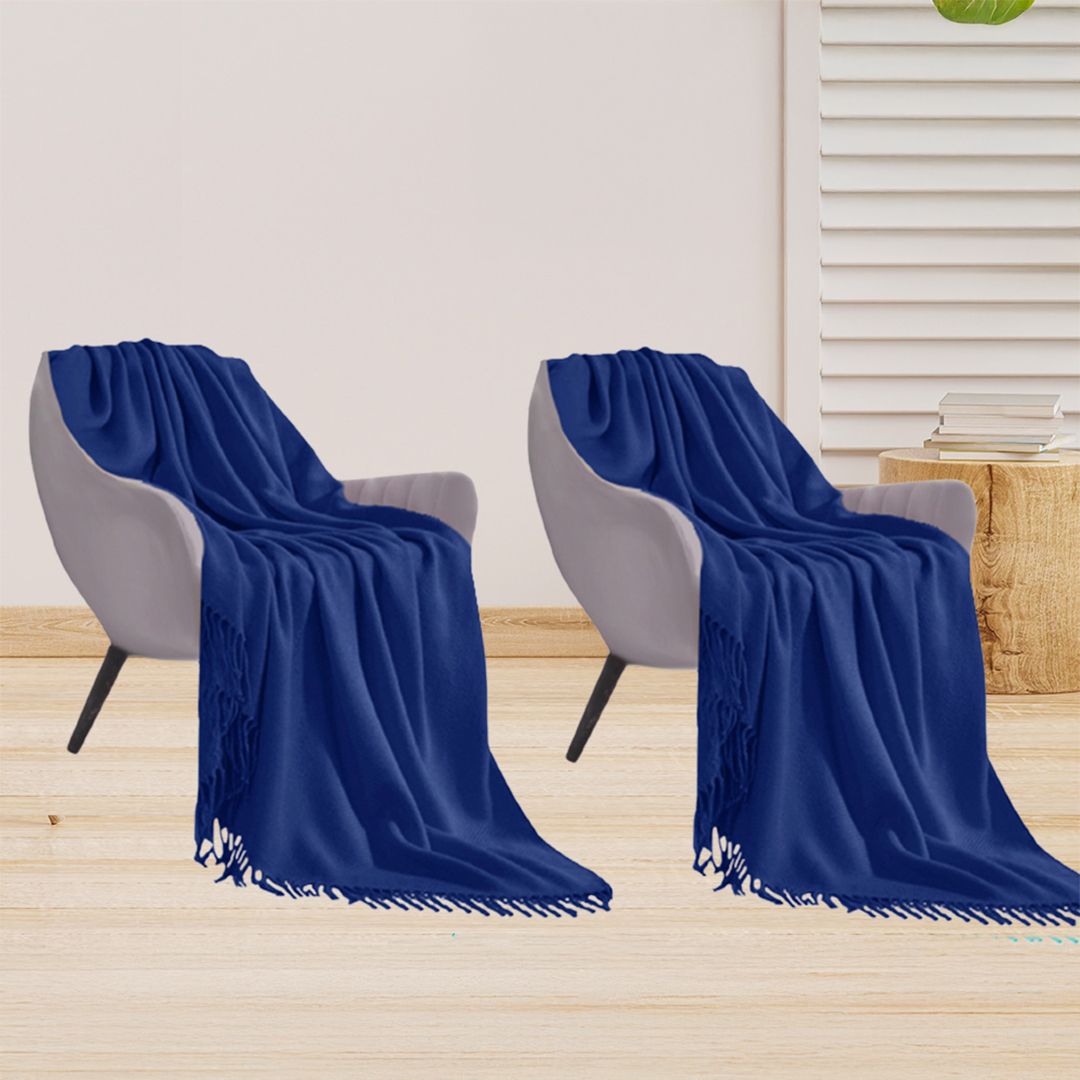 ✔ 2x SOGA Royal Blue Acrylic Knitted Throw Blankets
