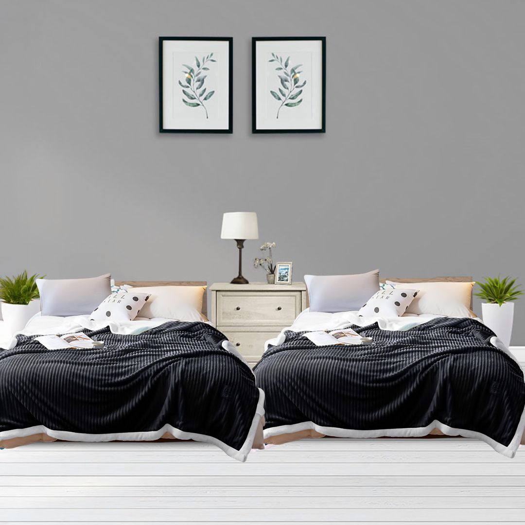 ✔ 2x SOGA Black Throw Blankets with Double Sided Thick Flannel Coverlet