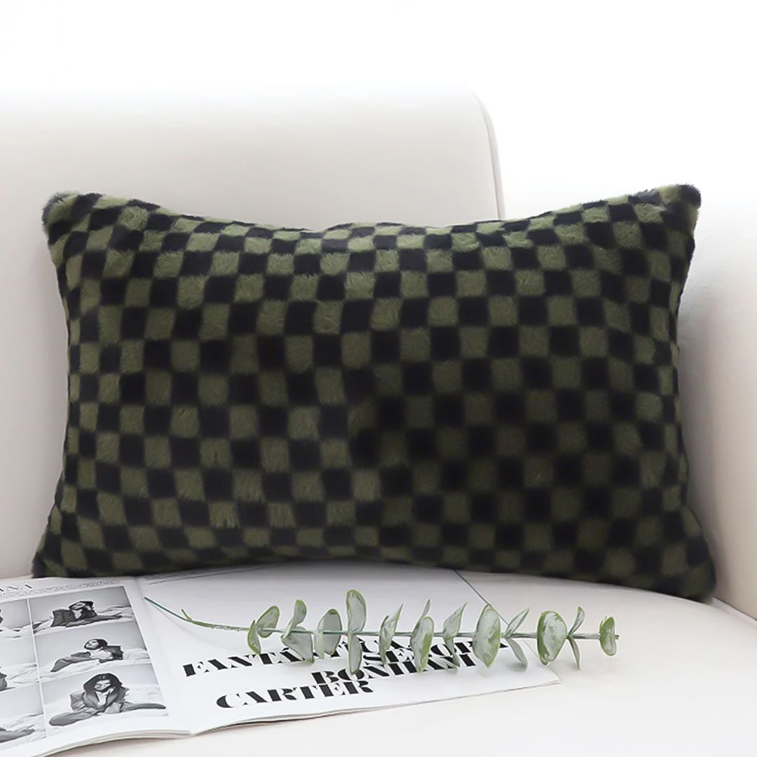 ✔ Set of 2 lumbar throw pillows with a stylish checkered design