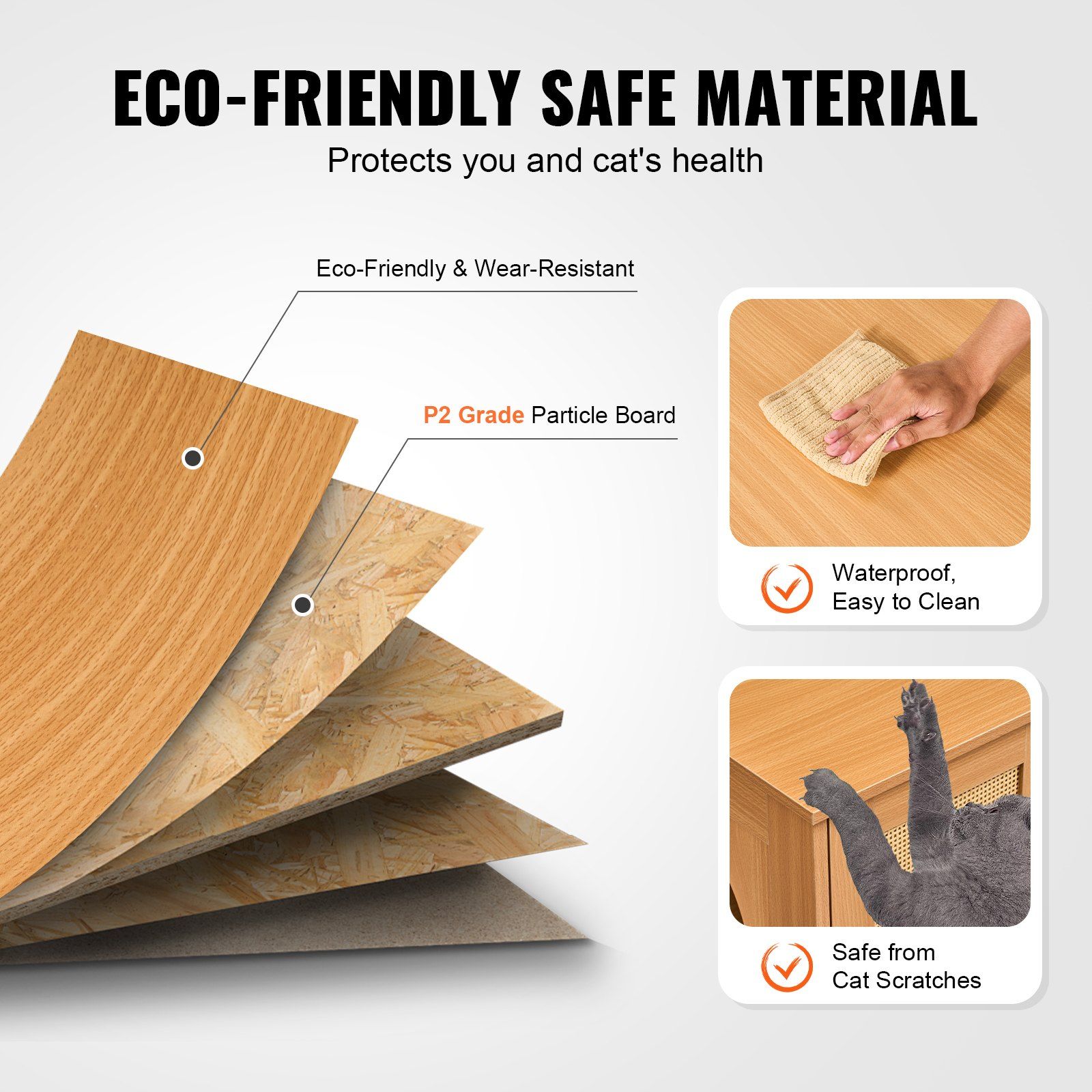 Made of P2 grade particle board, it is durable, ensuring the health of you and your pets. The high-quality finish is waterproof, and not easy to be damaged by cat scratching. Even cat urine or other stains can be easily wiped clean, greatly simplifying daily maintenance.