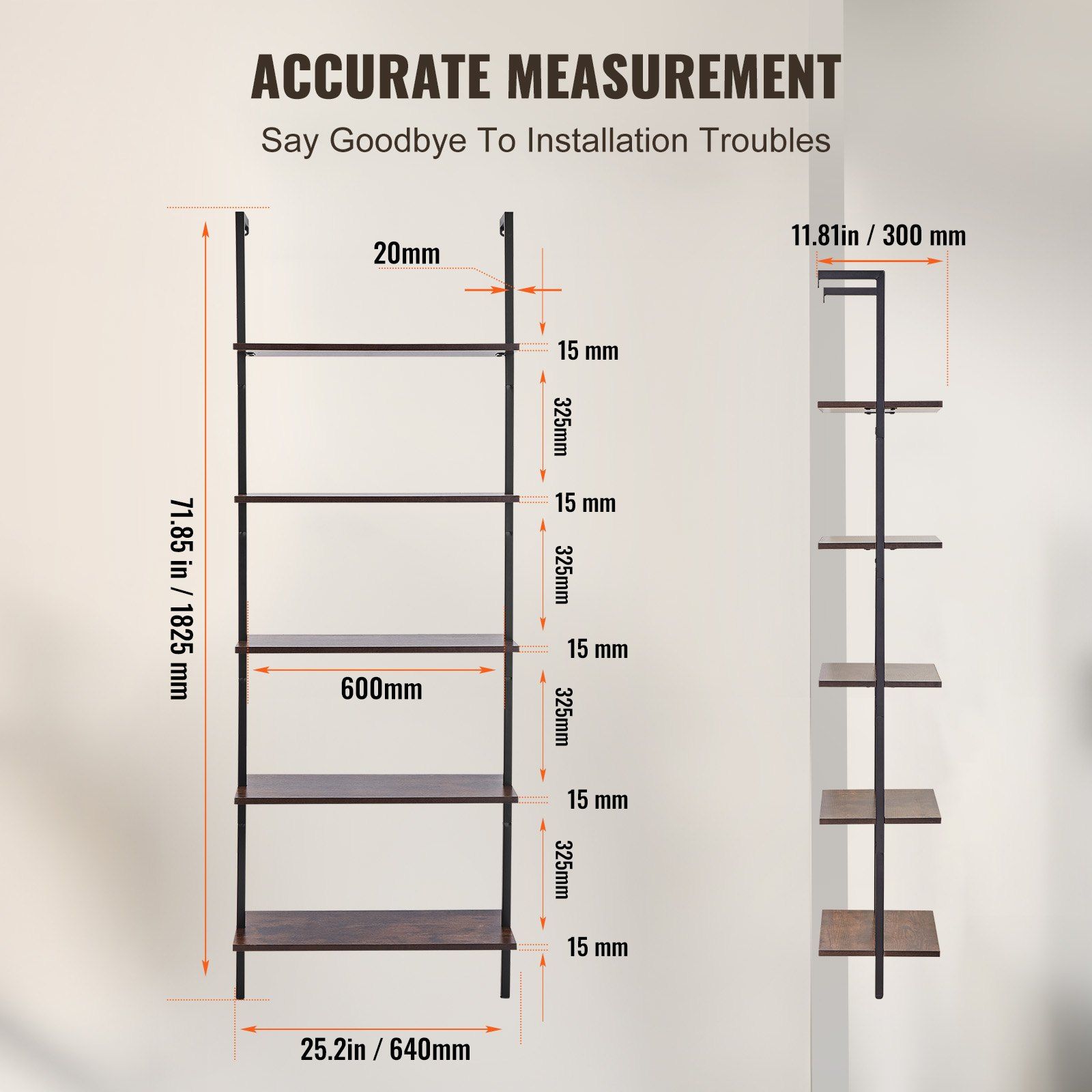 5.Precise Measurements: Our metal pipe shelving unit stands at 71.9" tall with 12.6" between each shelf. Be sure to measure your installation area beforehand for a perfect fit.
