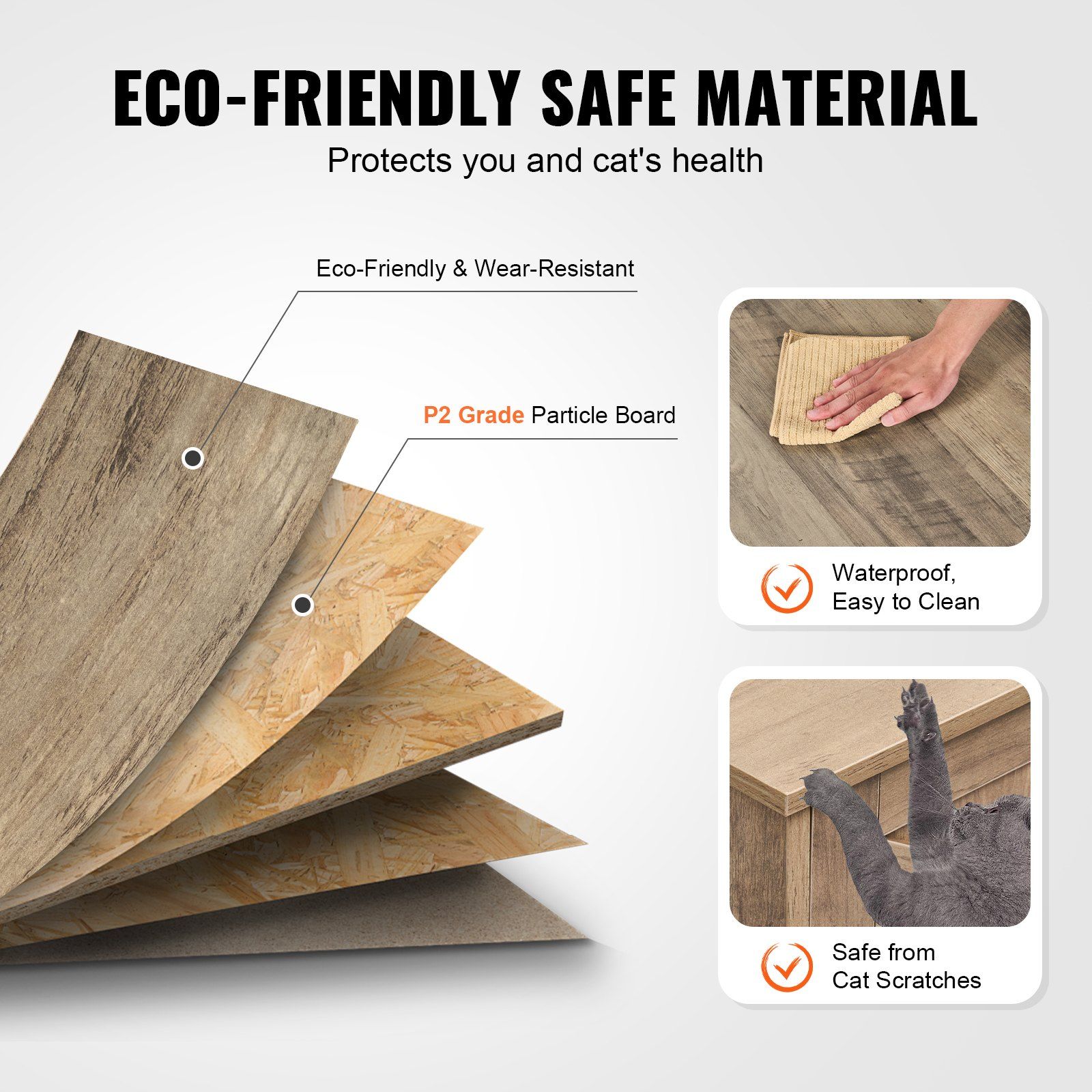 Made of P2 grade particle board, it is durable, ensuring the health of you and your pets. The high-quality finish is waterproof, and not easy to be damaged by cat scratching. Even cat urine or other stains can be easily wiped clean, greatly simplifying daily maintenance.