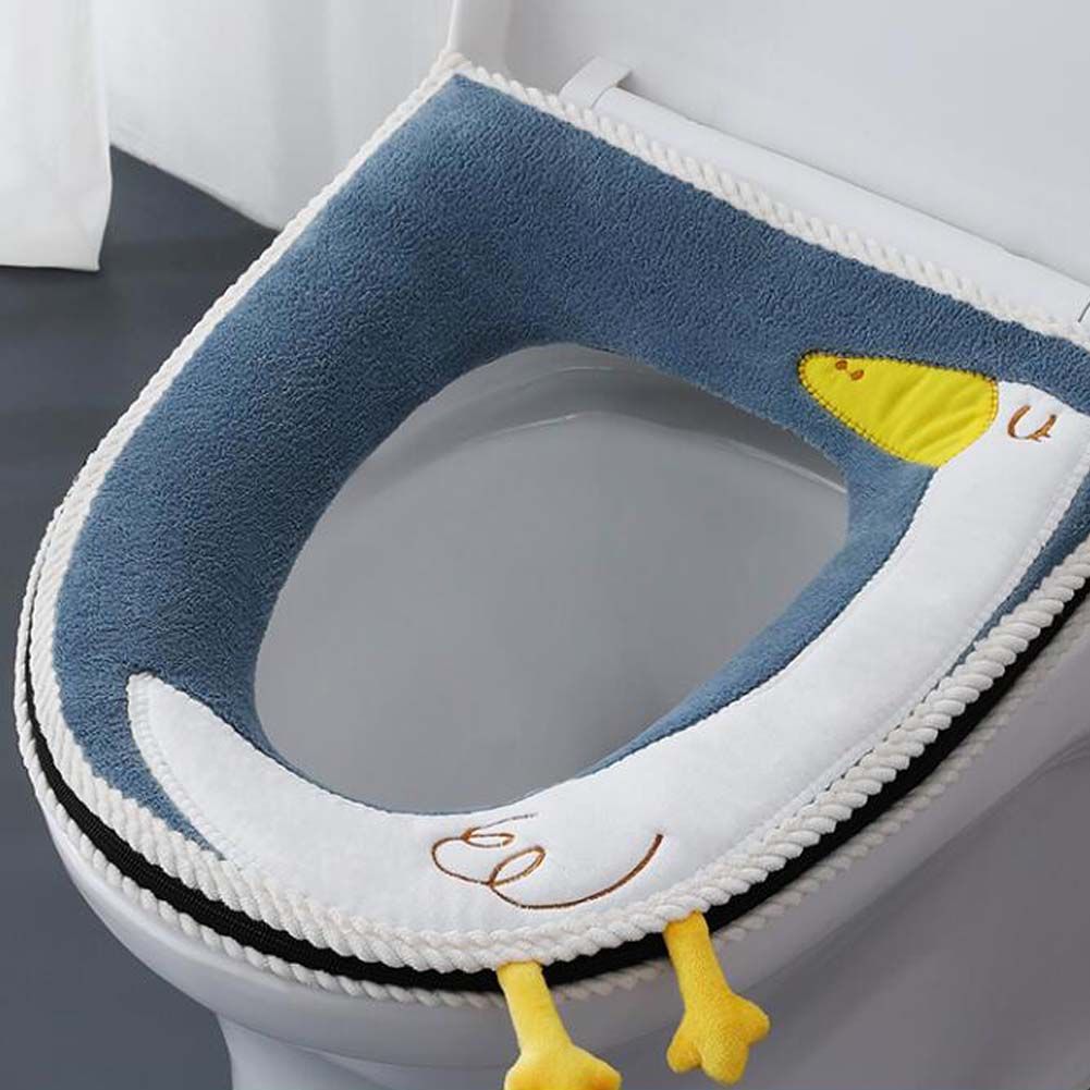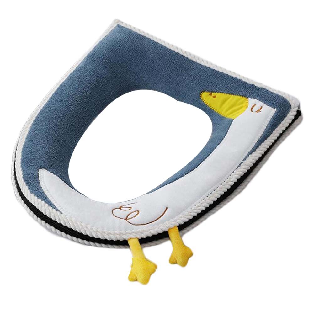 Blue Cute Duck Toilet Seat Cushion Mat Winter Plush Zipper Toilet Seat Cover Pad Toilet Seat Warmer
