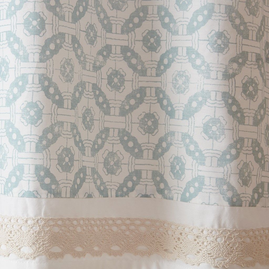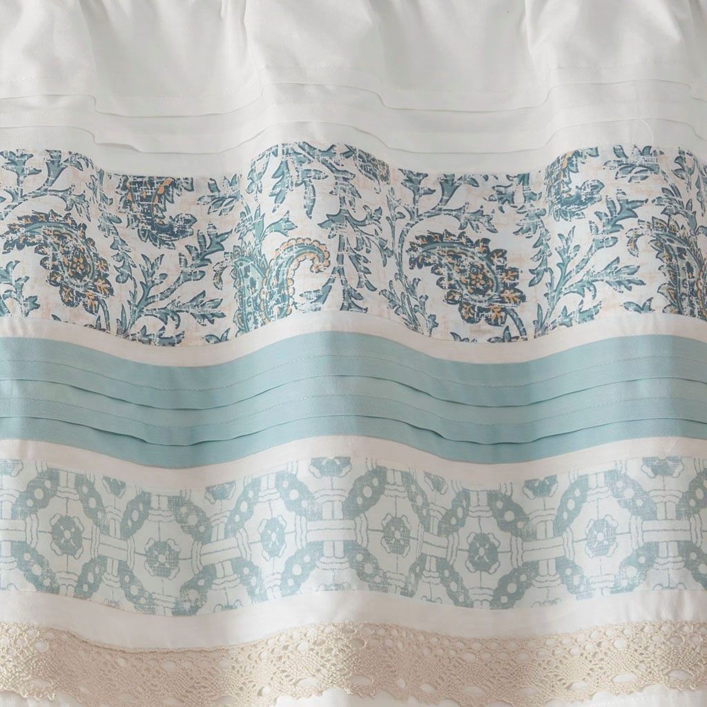 Shabby chic in all the right ways, our Madison Park Dawn valance is the perfect update for any room. The paisley print and delicate pieced design showcases a soft color palette of aqua, periwinkle, and white hues, finished with a lace trim for additional charm and texture. The window valance is also OEKO-TEX certified, meaning it does not contain any harmful substances or chemicals, ensuring quality comfort and wellness. Made from 100% cotton for natural appeal, this valance features a rod pocket that fits up to 1.25" diameter rod. Complete the look with coordinating kitchen tiers or perfect on its own for small windows or layering. Complete the set with coordinate kitchen tier, bedding and shower curtain available and sold separately.