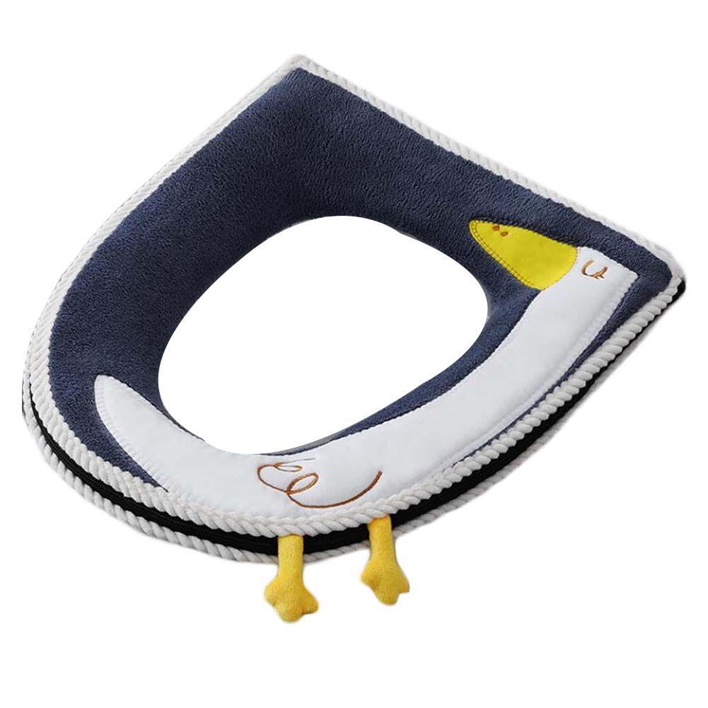 Winter Plush Zipper Toilet Seat Cover Pad Cute Duck Toilet Seat Cushion Mat Toilet Seat Warmer, Blue