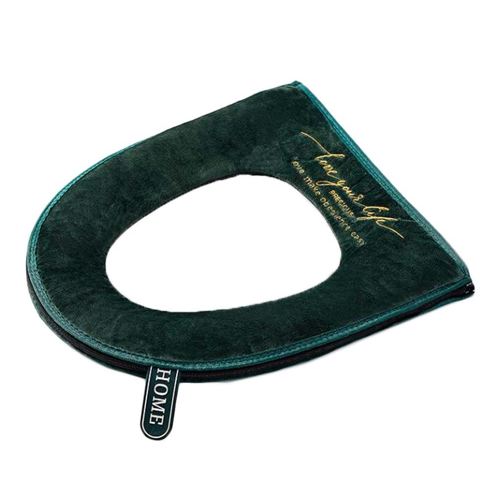 Home > Velvet Zipper Toilet Seat Cover Pad Winter Toilet Seat Cushion Mat Toilet Seat Warmer, Dark Green