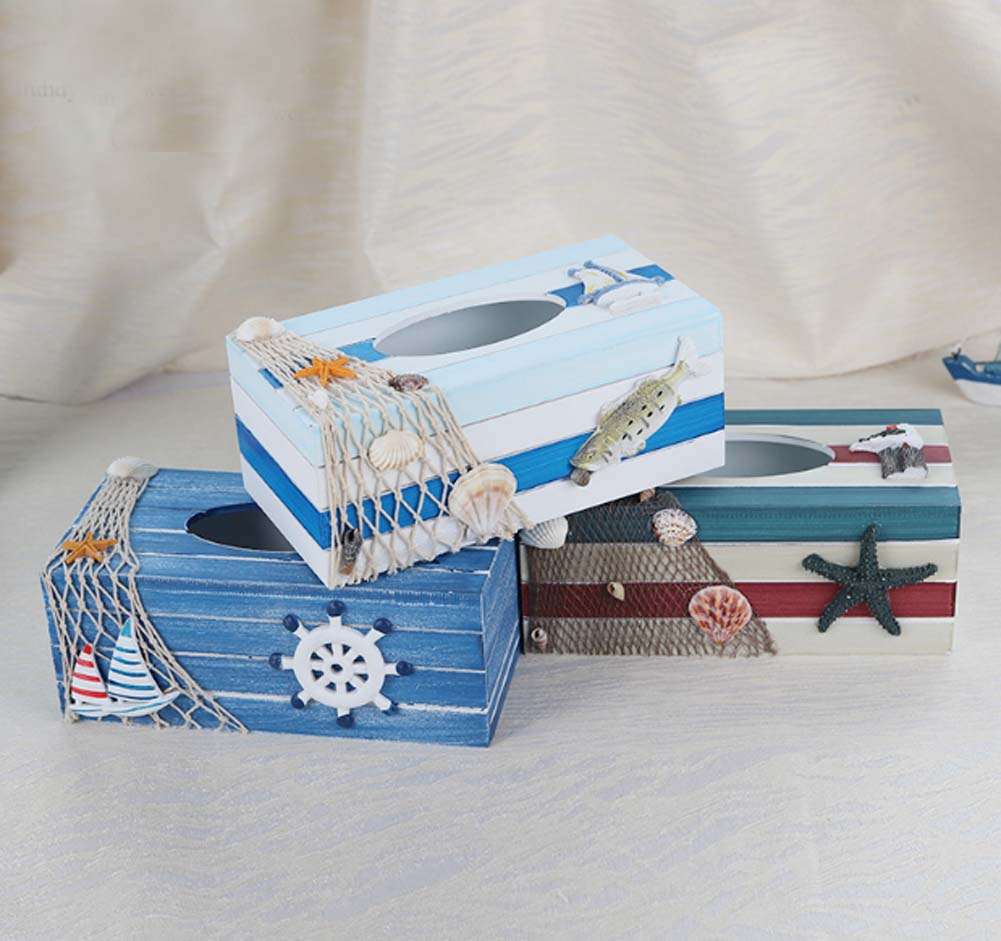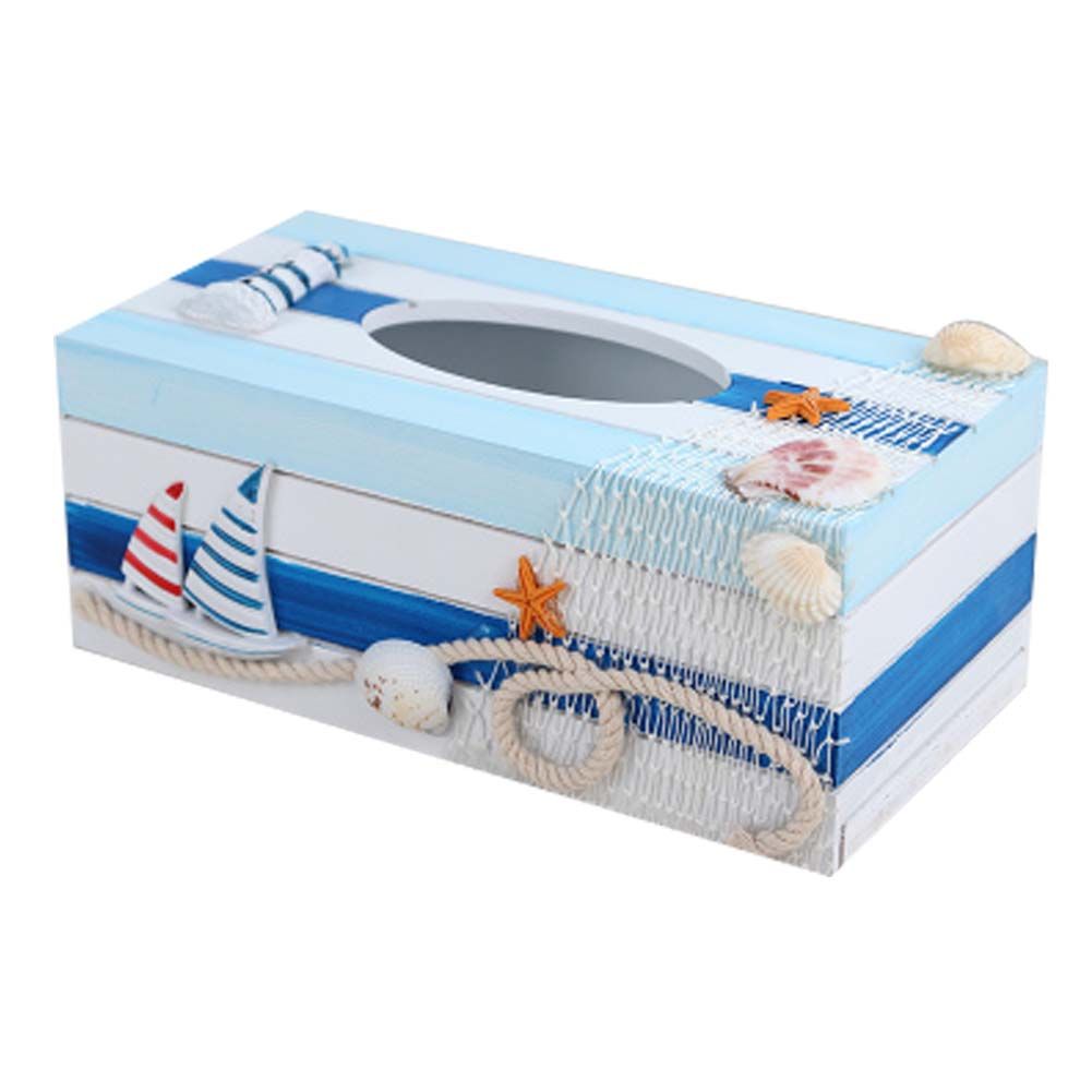 Home > Wooden Tissue Box Holder Rectangle Marine Style Tissue Box Cover for Home Office Bar