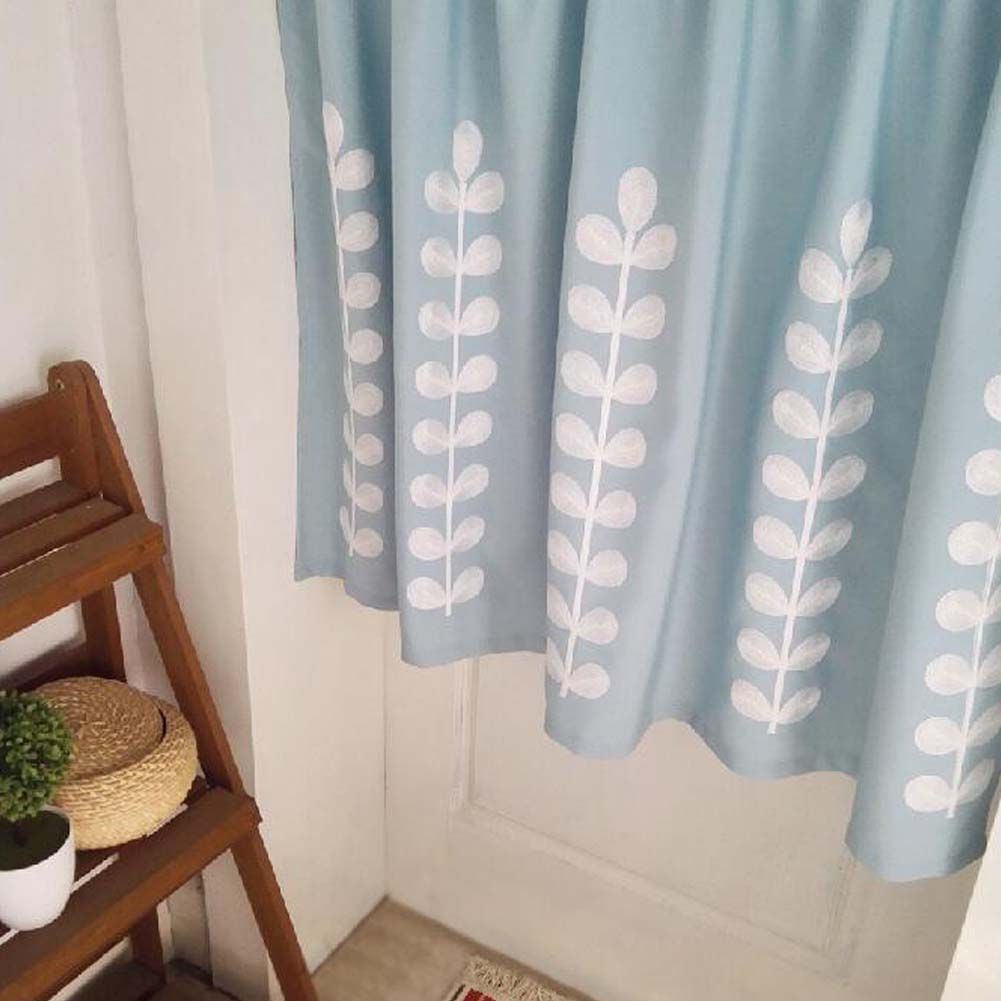Home > [Blue Leaves]Short Kitchen Cloth Curtain Small Window Half Curtain Cafe Curtain