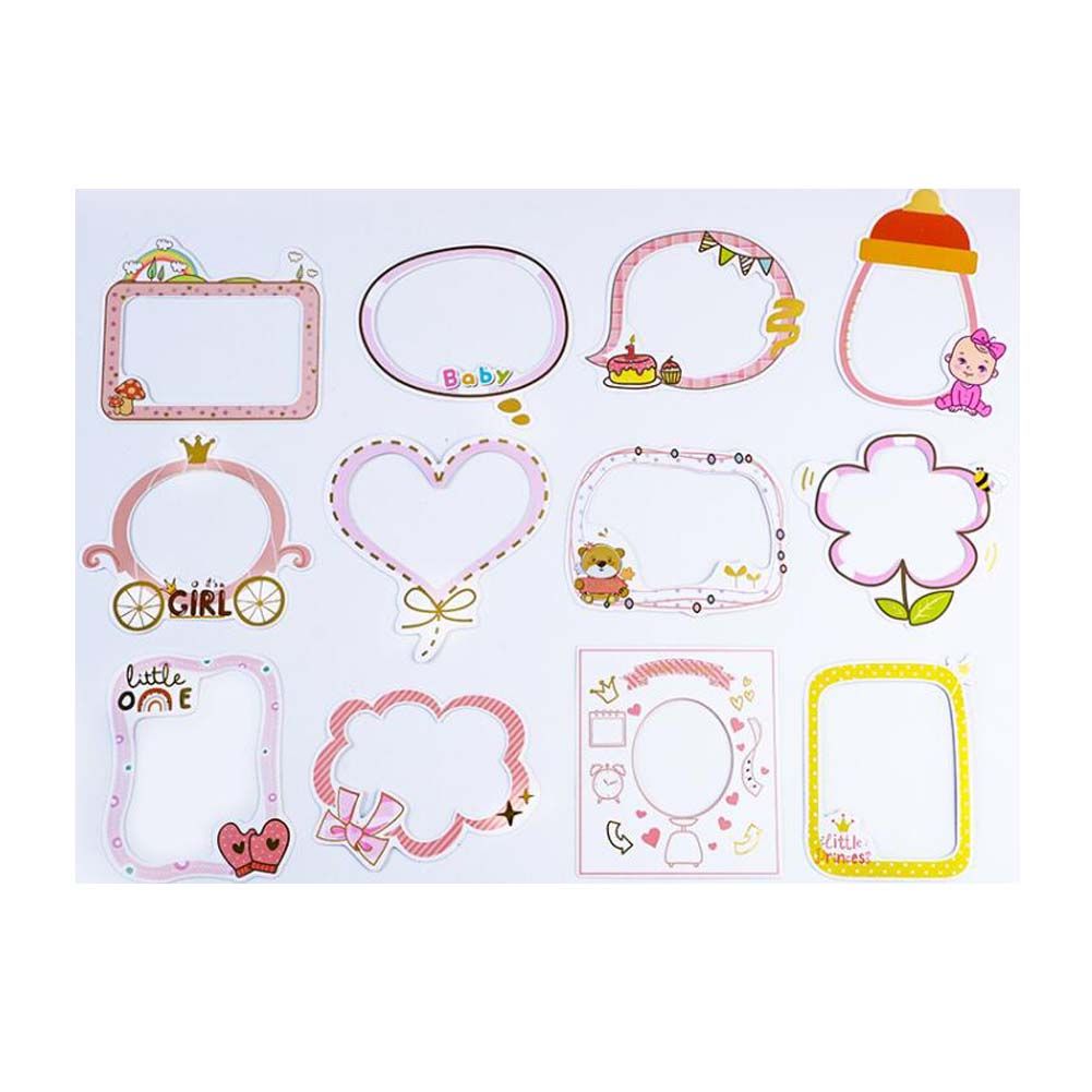 Home > 12 Pcs Paper Picture Frame Stickers Baby Girl Growth Record Booklet Decor DIY Journal Album Sticker Scrapbooking Supplies