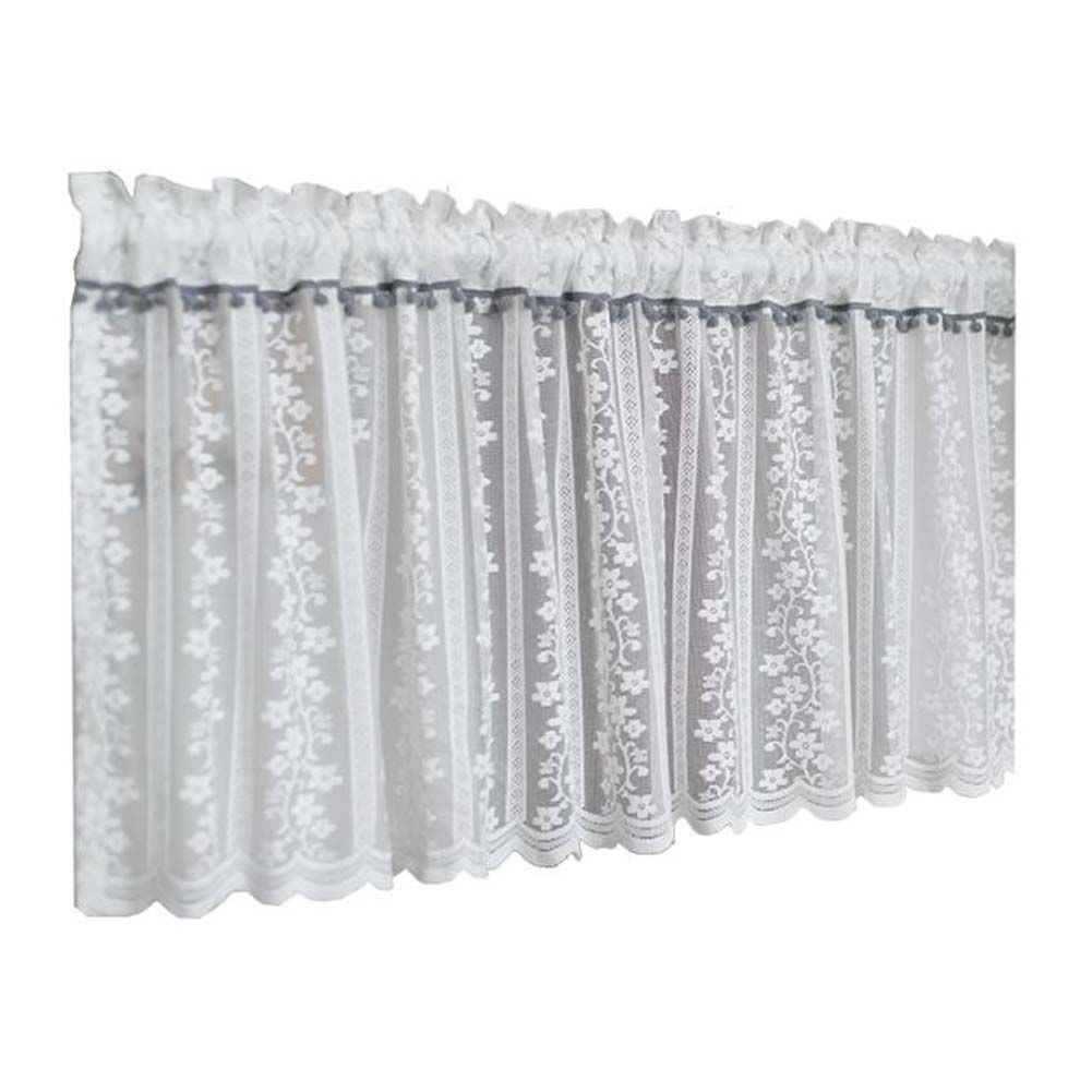 Vine Flower Lace Embroidery Half Curtain Short Curtain Partition Curtain Sheer Valance Tier Cafe Curtain,59x15 inch