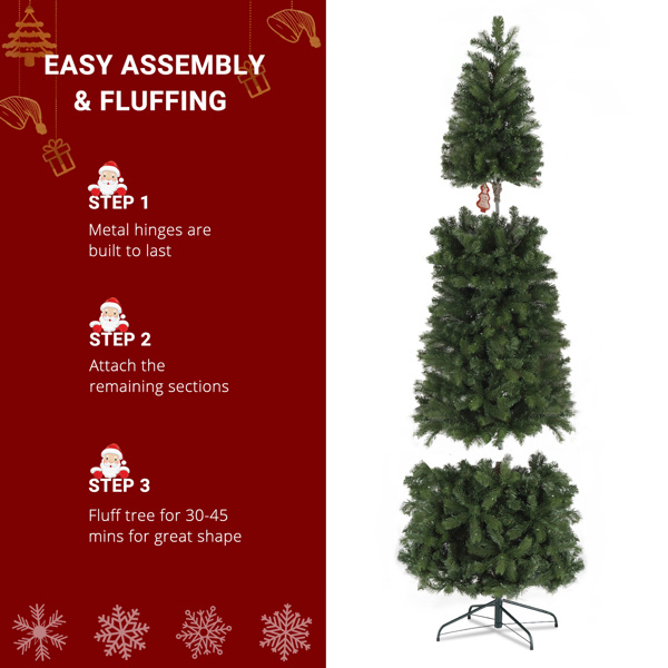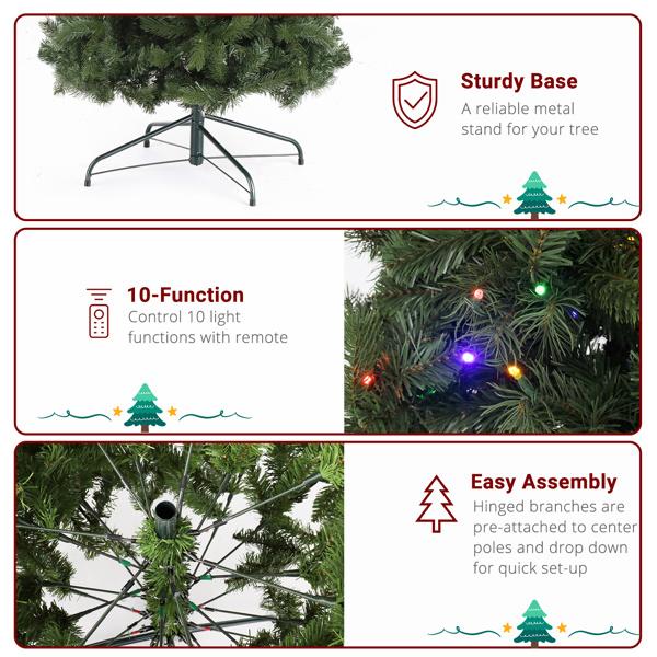 7.5ft Pencil Shape Automatic Tree Structure PVC Material 1090 Round Heads 350 Lights Warm Color With Colorful 10 Modes, Christmas Tree Green