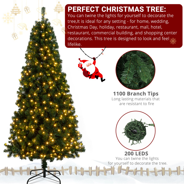 7ft 1100 Branches PVC Material DIY 200 Lights Warm Color 8 Modes Christmas Tree Green
