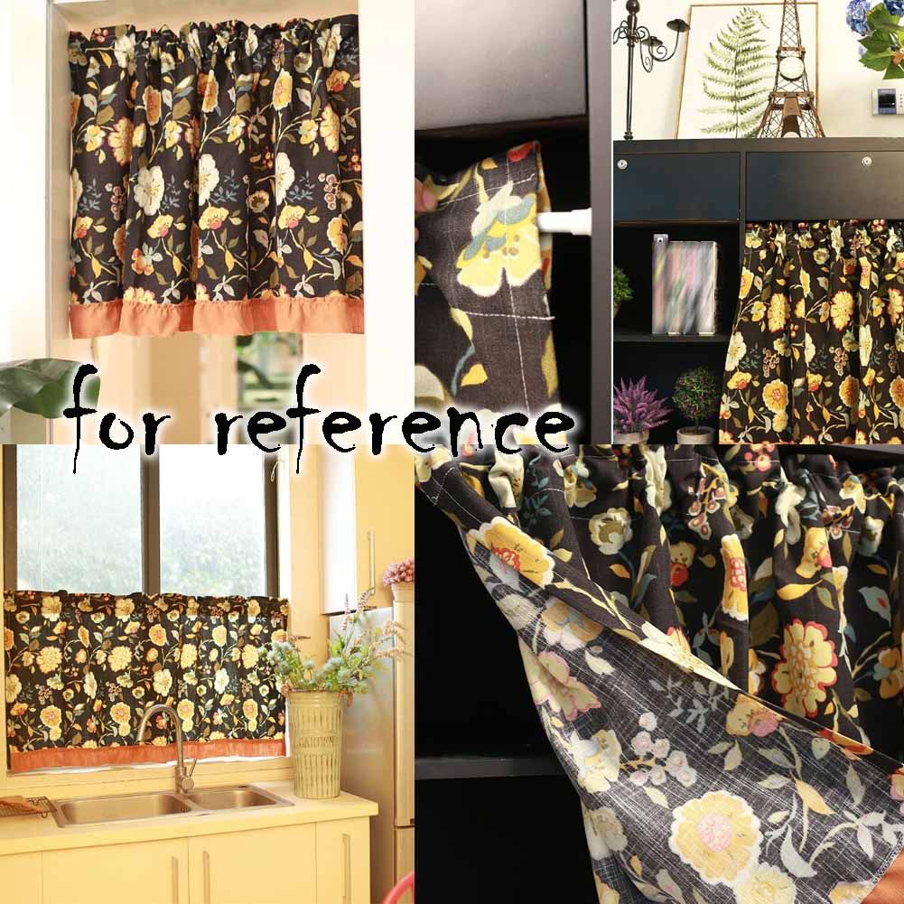Home > Retro Flower Cotton Cafe Kitchen Curtains Half Curtain Decorative Door Curtain, Black