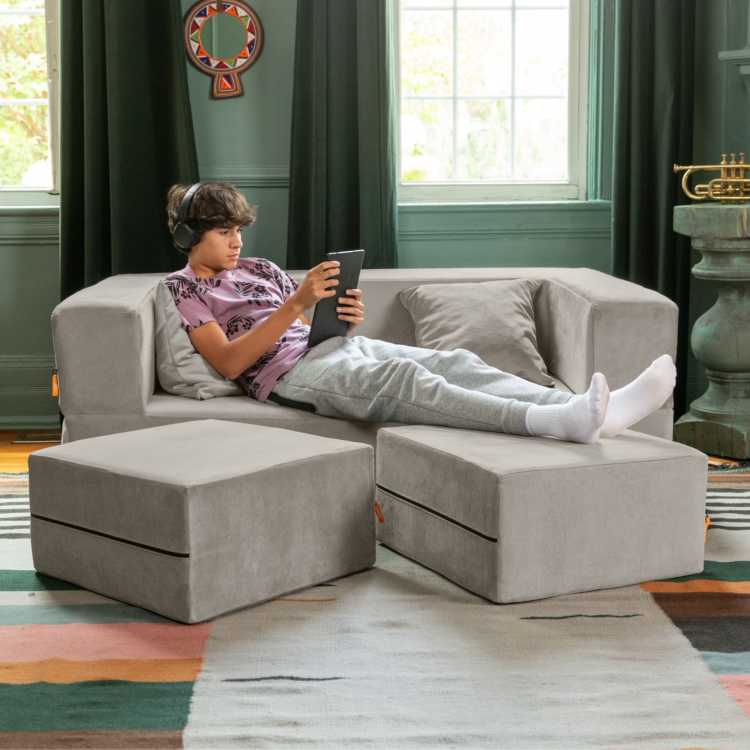 Jaxx Zipline Convertible Sleeper Loveseat & Ottomans, Textured Microvelvet - Dove Grey