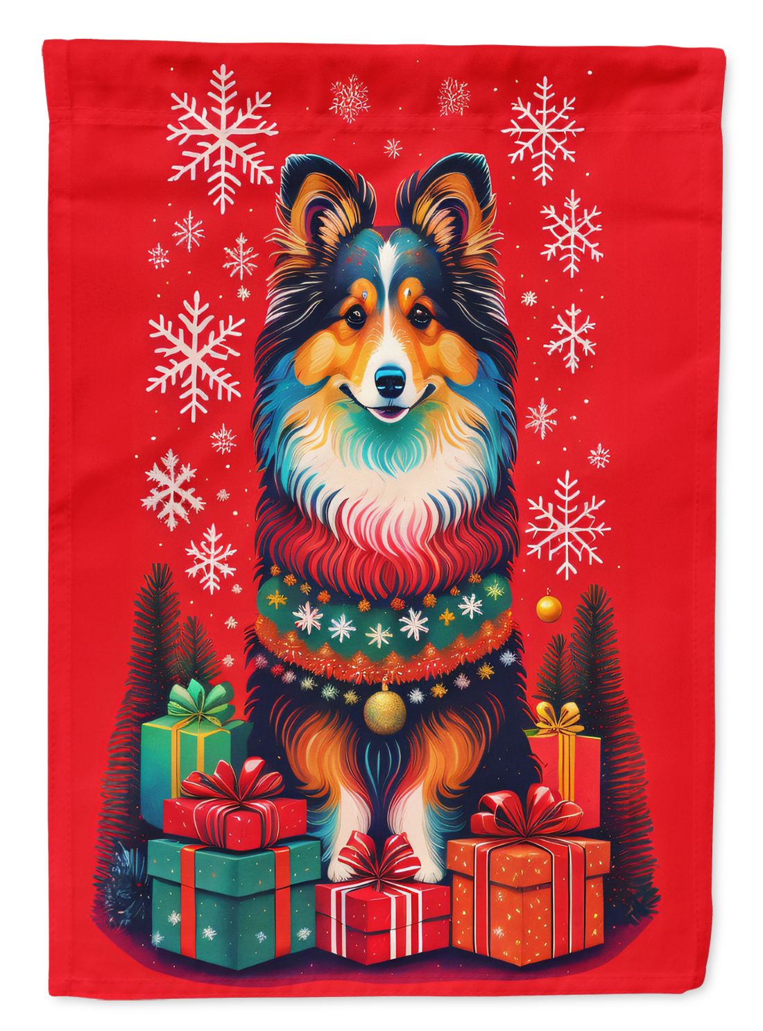 Sheltie Holiday Christmas House Flag Large Porch Sleeve Pole Decorative Outside Yard Banner Artwork Wall Hanging, Polyester, House Size, Multicolor