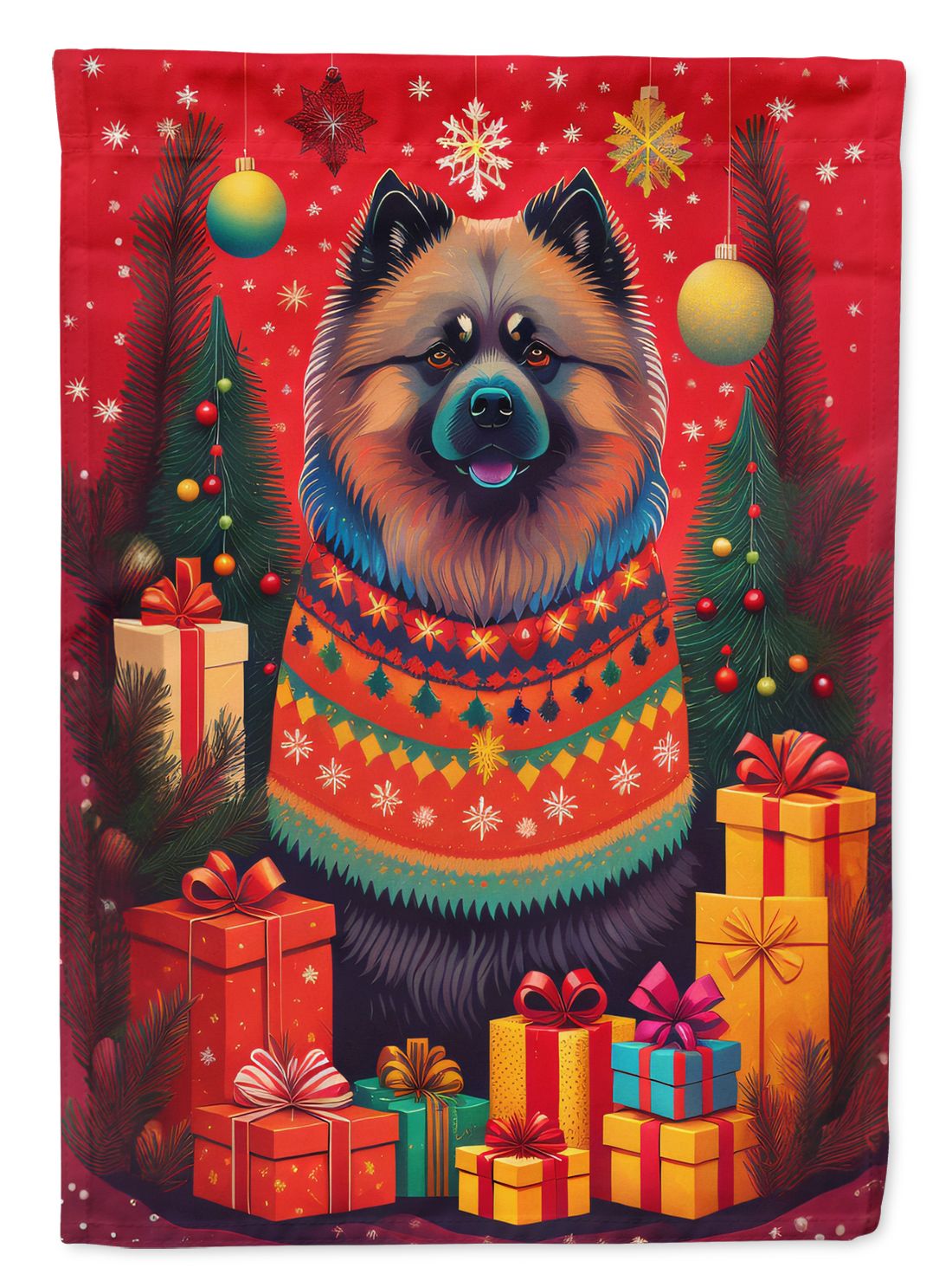 House Flag featuring breed specific Keeshond artwork. Celebrate Christmas with this Christmas Large Flag. Presenting our Heavy Duty Polyester House Size Decorative Sleeve Pole Flag, a vibrant addition to enhance the aesthetic appeal of your home. This large decorative flag, measuring approximately 28 x 40 inches, offers ample coverage and visibility. Each flag is meticulously sewn and made individually, ensuring a unique piece that may slightly vary in size. It's a sleeve pole flag, designed to fit a standard decorative flag pole effortlessly. Please note that the flag pole and bracket are not included and should be purchased separately. What sets our flag apart is its dual-sided print. The design is mirrored on both sides of the fabric, allowing for uniform visibility regardless of the angle. Printed in full color, our flag showcases vibrant hues that truly stand out. To ensure lasting vibrancy and durability, the dyes are heat-set into the fabric. This ensures your flag remains bright and captivating through various weather conditions. Elevate the look of your home with our Heavy Duty Polyester House Size Decorative Sleeve Pole Flag!