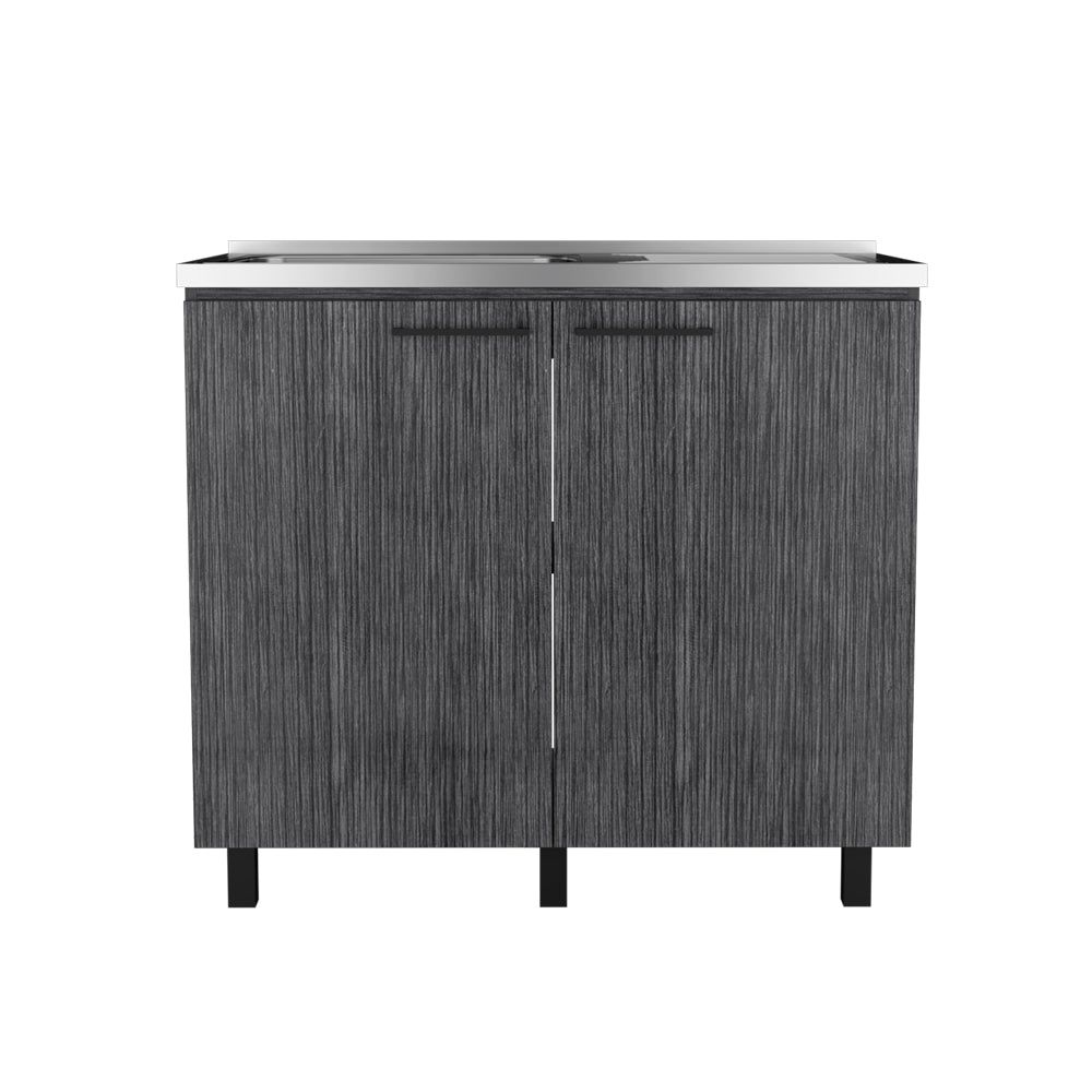 The Burwood utility sink cabinet. This unit includes a sink and provides plenty of extra storage capacity, two doors and two shelves sizes (12.2" H x 37.5" W) to sort your kitchen accessories, making it ideal for any space. Designed with an elegant white, black or smoke oak manufactured wood finish.Dimensions:Height: 35.1'Width: 39.3'Depth: 20.6'Furniture Type: Ready to assemble (full assembly required). Certifications: CARB phase II compliant – TSCA Title VI Compliant. Warranty: 1-year warranty coverage in wooden parts- 1-year warranty coverage in hardware pieces since its manufacturing date is found in the lot number printed in the product box. Shipment details: Free shipping to the 48 contiguous states - delivery time: Between 2 and 5 days depending on the customer's location- season- and weather factors.Other details: This product does not include decorative or background elements; Check that the box is in good condition- and well packed- and check with the help of the manual that the corresponding parts have been included; For more information regarding warranty- shipment details- cancellations- returns & replacement parts go to the bottom section of our website to learn more; Installation & Assembly Instructions included.