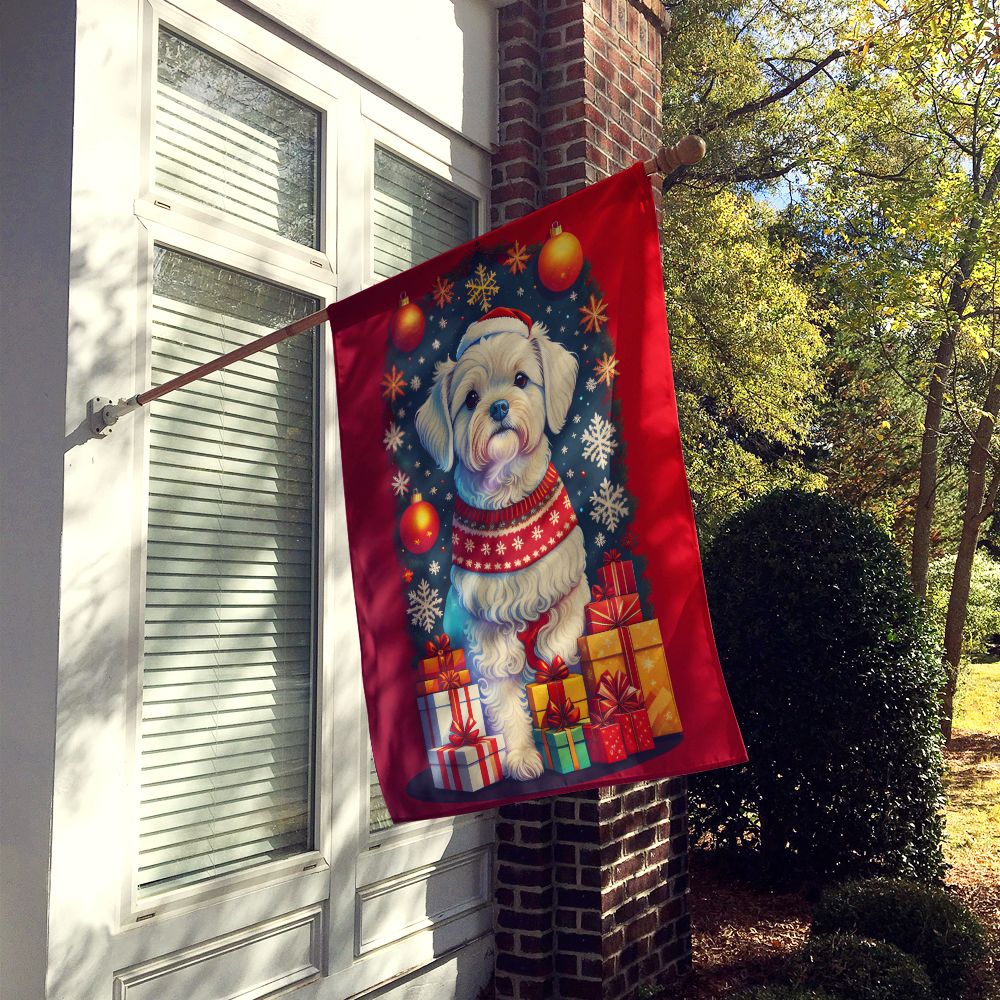 Maltese Holiday Christmas House Flag Large Porch Sleeve Pole Decorative Outside Yard Banner Artwork Wall Hanging, Polyester, House Size, Multicolor