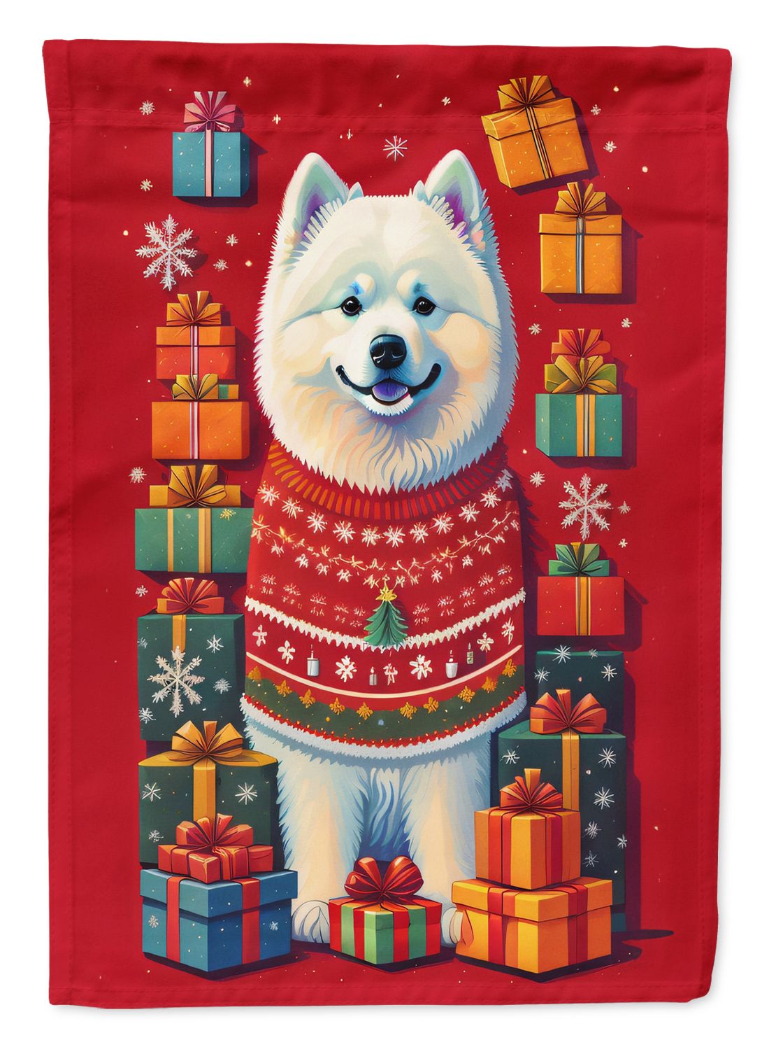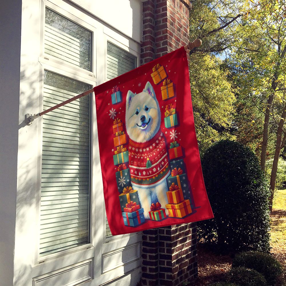 Samoyed Holiday Christmas House Flag Large Porch Sleeve Pole Decorative Outside Yard Banner Artwork Wall Hanging, Polyester, House Size, Multicolor