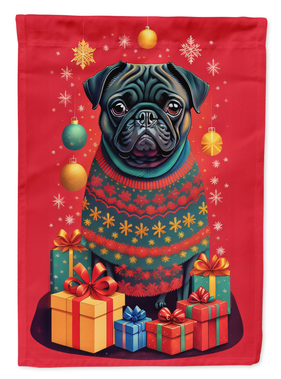 House Flag featuring breed specific Pug artwork. Celebrate Christmas with this Christmas Large Flag. Presenting our Heavy Duty Polyester House Size Decorative Sleeve Pole Flag, a vibrant addition to enhance the aesthetic appeal of your home. This large decorative flag, measuring approximately 28 x 40 inches, offers ample coverage and visibility. Each flag is meticulously sewn and made individually, ensuring a unique piece that may slightly vary in size. It's a sleeve pole flag, designed to fit a standard decorative flag pole effortlessly. Please note that the flag pole and bracket are not included and should be purchased separately. What sets our flag apart is its dual-sided print. The design is mirrored on both sides of the fabric, allowing for uniform visibility regardless of the angle. Printed in full color, our flag showcases vibrant hues that truly stand out. To ensure lasting vibrancy and durability, the dyes are heat-set into the fabric. This ensures your flag remains bright and captivating through various weather conditions. Elevate the look of your home with our Heavy Duty Polyester House Size Decorative Sleeve Pole Flag!