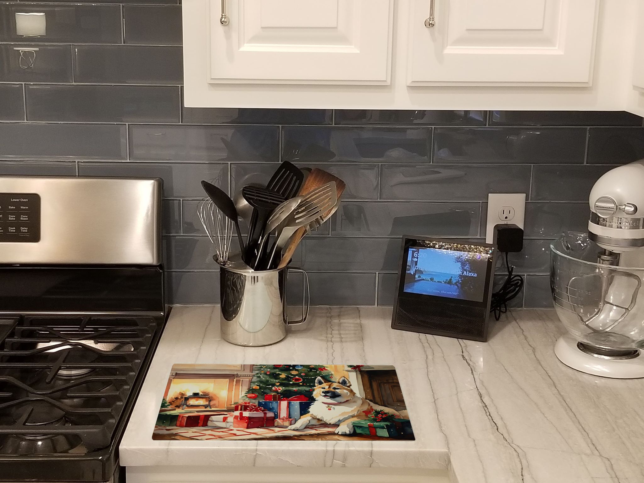 Glass Cutting Board featuring breed specific Akita artwork. Celebrate Christmas with this Christmas Cutting Board. Introduce your kitchen to the vibrant, large Decorative Glass Cutting Board from Caroline's Treasures. Crafted from resilient tempered glass, this board is not only a utilitarian necessity but also a colorful art piece. With its generous dimensions of 15 inches in height and 12 inches in length, it offers ample space for all your cutting needs. Every piece showcases captivating artwork from distinguished artists, bringing an aesthetic edge to your kitchen. Beyond its attractive design, this cutting board ensures your countertop stays pristine and unscathed, owing to its heat-resistant properties. Engineered with user convenience in mind, it features non-skid feet for stability, and rounded corners for additional safety. Its robust construction renders it virtually unbreakable, guaranteeing longevity. The board comes with protective feet bumpers, maintaining its position during use. This product is recommended to be hand washed only. Proudly printed and assembled in the United States, this cutting board exemplifies superior craftsmanship. With Caroline's Treasures' Decorative Glass Cutting Board, you're investing in a blend of functionality and artistic flair.