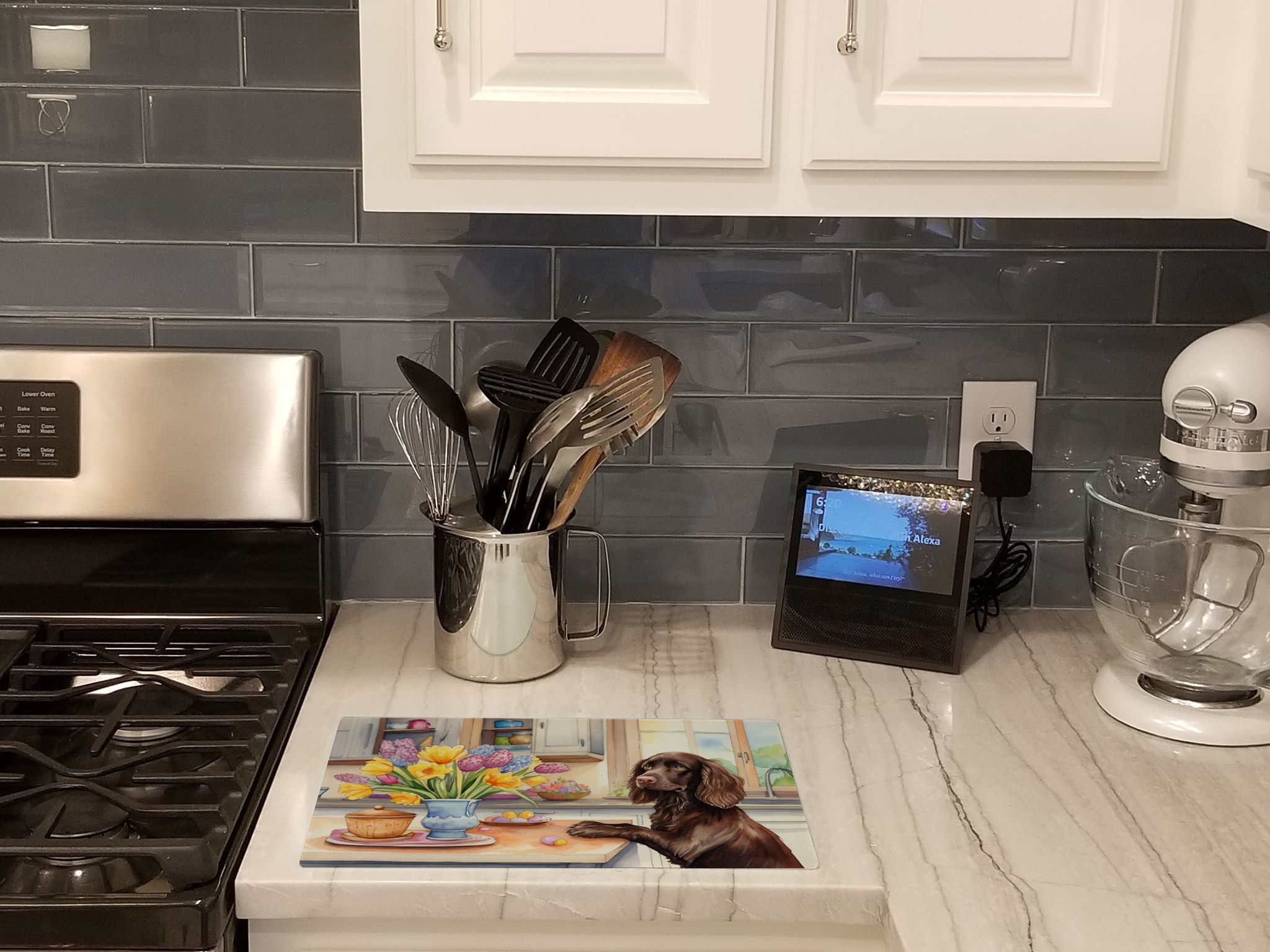 Glass Cutting Board featuring breed specific Boykin Spaniel artwork. Celebrate Easter with this Easter Cutting Board. Introduce your kitchen to the vibrant, large Decorative Glass Cutting Board from Caroline's Treasures. Crafted from resilient tempered glass, this board is not only a utilitarian necessity but also a colorful art piece. With its generous dimensions of 15 inches in height and 12 inches in length, it offers ample space for all your cutting needs. Every piece showcases captivating artwork from distinguished artists, bringing an aesthetic edge to your kitchen. Beyond its attractive design, this cutting board ensures your countertop stays pristine and unscathed, owing to its heat-resistant properties. Engineered with user convenience in mind, it features non-skid feet for stability, and rounded corners for additional safety. Its robust construction renders it virtually unbreakable, guaranteeing longevity. The board comes with protective feet bumpers, maintaining its position during use. This product is recommended to be hand washed only. Proudly printed and assembled in the United States, this cutting board exemplifies superior craftsmanship. With Caroline's Treasures' Decorative Glass Cutting Board, you're investing in a blend of functionality and artistic flair.