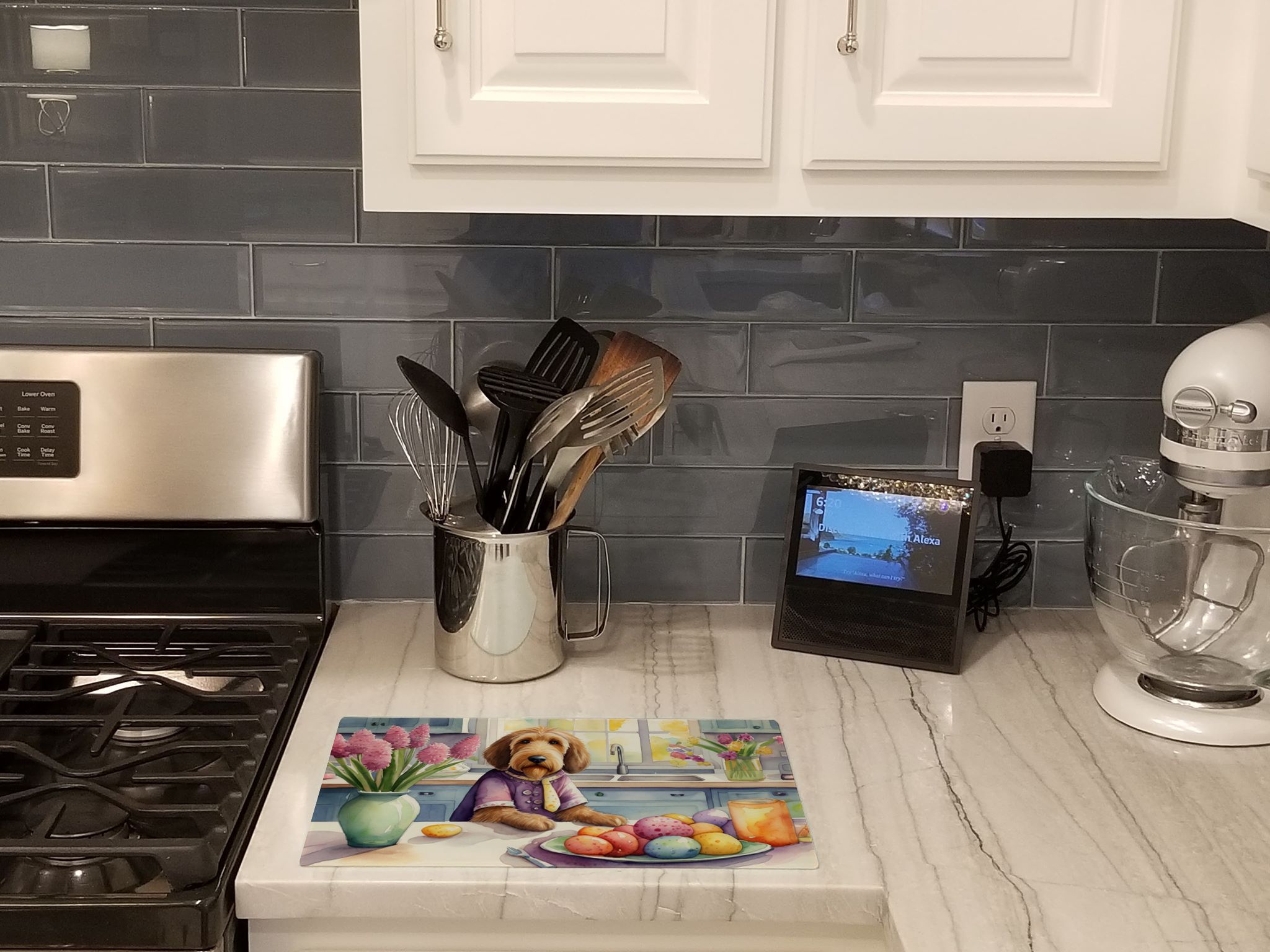 Glass Cutting Board featuring breed specific Otterhound artwork. Celebrate Easter with this Easter Cutting Board. Introduce your kitchen to the vibrant, large Decorative Glass Cutting Board from Caroline's Treasures. Crafted from resilient tempered glass, this board is not only a utilitarian necessity but also a colorful art piece. With its generous dimensions of 15 inches in height and 12 inches in length, it offers ample space for all your cutting needs. Every piece showcases captivating artwork from distinguished artists, bringing an aesthetic edge to your kitchen. Beyond its attractive design, this cutting board ensures your countertop stays pristine and unscathed, owing to its heat-resistant properties. Engineered with user convenience in mind, it features non-skid feet for stability, and rounded corners for additional safety. Its robust construction renders it virtually unbreakable, guaranteeing longevity. The board comes with protective feet bumpers, maintaining its position during use. This product is recommended to be hand washed only. Proudly printed and assembled in the United States, this cutting board exemplifies superior craftsmanship. With Caroline's Treasures' Decorative Glass Cutting Board, you're investing in a blend of functionality and artistic flair.