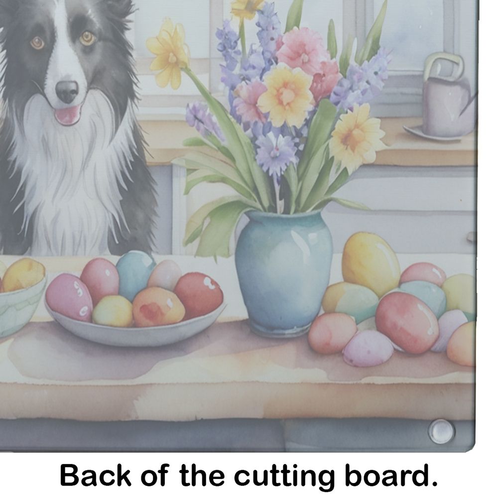 Glass Cutting Board featuring breed specific Border Collie artwork. Celebrate Easter with this Easter Cutting Board. Introduce your kitchen to the vibrant, large Decorative Glass Cutting Board from Caroline's Treasures. Crafted from resilient tempered glass, this board is not only a utilitarian necessity but also a colorful art piece. With its generous dimensions of 15 inches in height and 12 inches in length, it offers ample space for all your cutting needs. Every piece showcases captivating artwork from distinguished artists, bringing an aesthetic edge to your kitchen. Beyond its attractive design, this cutting board ensures your countertop stays pristine and unscathed, owing to its heat-resistant properties. Engineered with user convenience in mind, it features non-skid feet for stability, and rounded corners for additional safety. Its robust construction renders it virtually unbreakable, guaranteeing longevity. The board comes with protective feet bumpers, maintaining its position during use. This product is recommended to be hand washed only. Proudly printed and assembled in the United States, this cutting board exemplifies superior craftsmanship. With Caroline's Treasures' Decorative Glass Cutting Board, you're investing in a blend of functionality and artistic flair.