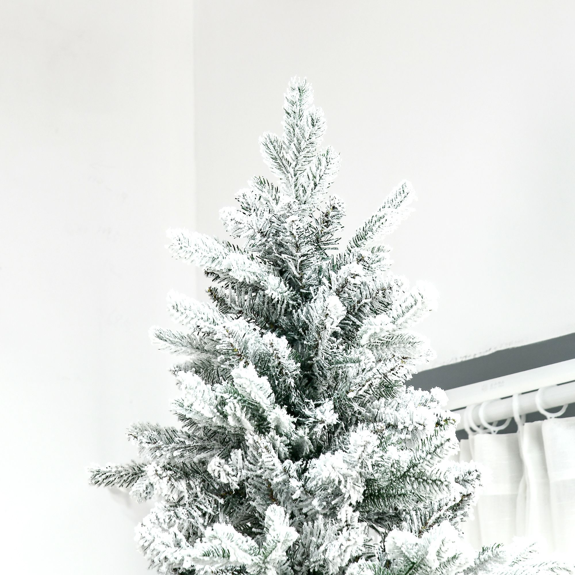 9 ft Pine Snow Flocked Artificial Christmas Tree with 616 Realistic Cedar Branches, Auto Open, Home Holiday Decoration, Green