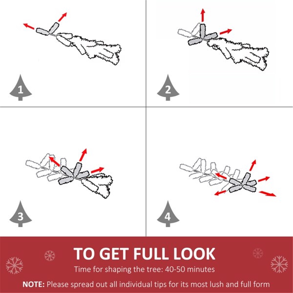 • In order to get a full appearance, please spread out all individual tips to get the best possible look from the tree, suggest you take 35-60 minutes to shape the tree.