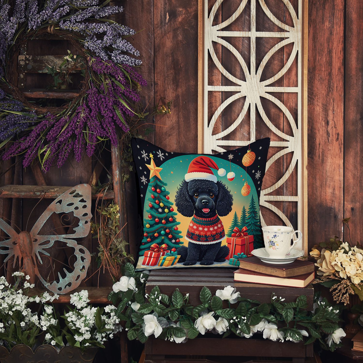 Home > Black Toy Poodle Christmas Throw Pillow Machine Washable, Indoor Outdoor Decorative Pillow for Couch, Bed or Patio, 14Hx14W