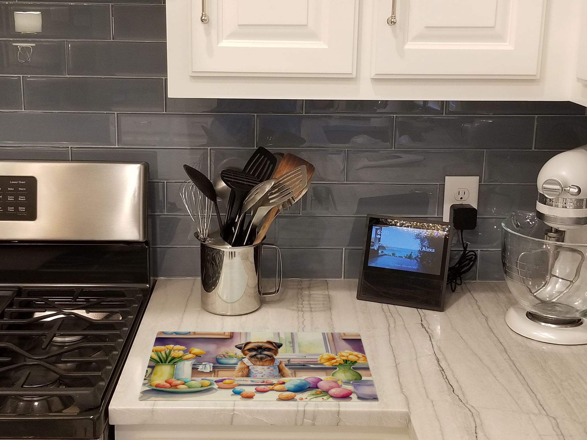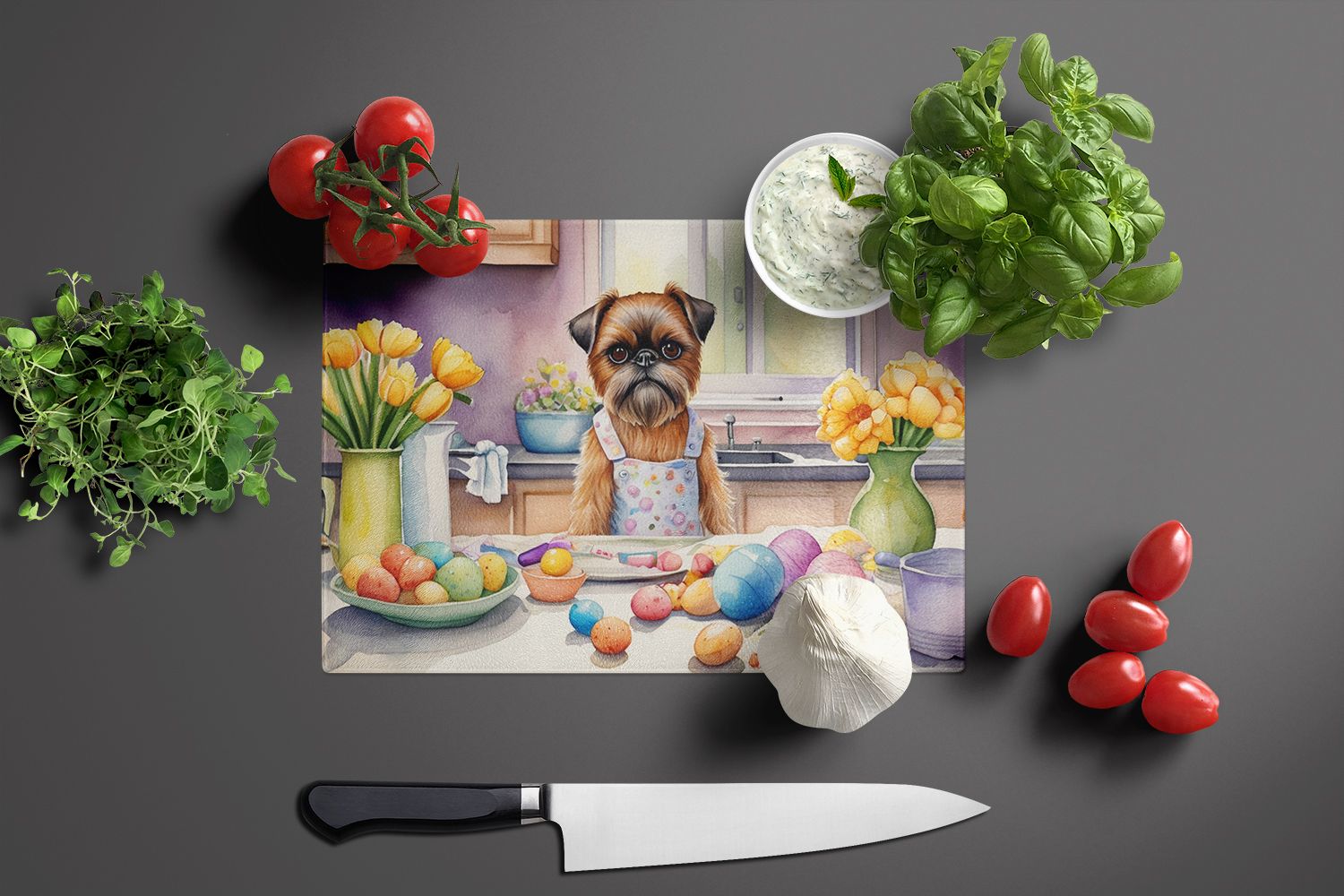 Glass Cutting Board featuring breed specific Brussels Griffon artwork. Celebrate Easter with this Easter Cutting Board. Introduce your kitchen to the vibrant, large Decorative Glass Cutting Board from Caroline's Treasures. Crafted from resilient tempered glass, this board is not only a utilitarian necessity but also a colorful art piece. With its generous dimensions of 15 inches in height and 12 inches in length, it offers ample space for all your cutting needs. Every piece showcases captivating artwork from distinguished artists, bringing an aesthetic edge to your kitchen. Beyond its attractive design, this cutting board ensures your countertop stays pristine and unscathed, owing to its heat-resistant properties. Engineered with user convenience in mind, it features non-skid feet for stability, and rounded corners for additional safety. Its robust construction renders it virtually unbreakable, guaranteeing longevity. The board comes with protective feet bumpers, maintaining its position during use. This product is recommended to be hand washed only. Proudly printed and assembled in the United States, this cutting board exemplifies superior craftsmanship. With Caroline's Treasures' Decorative Glass Cutting Board, you're investing in a blend of functionality and artistic flair.