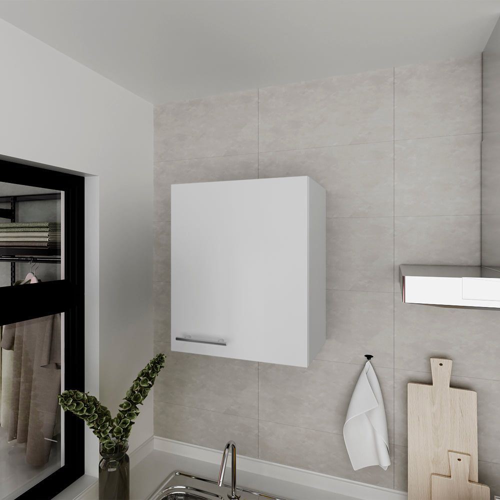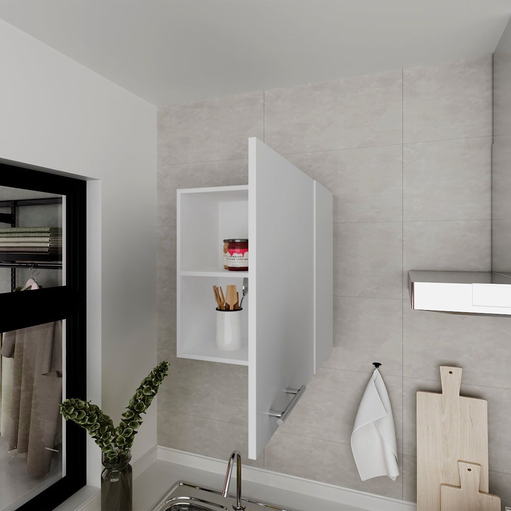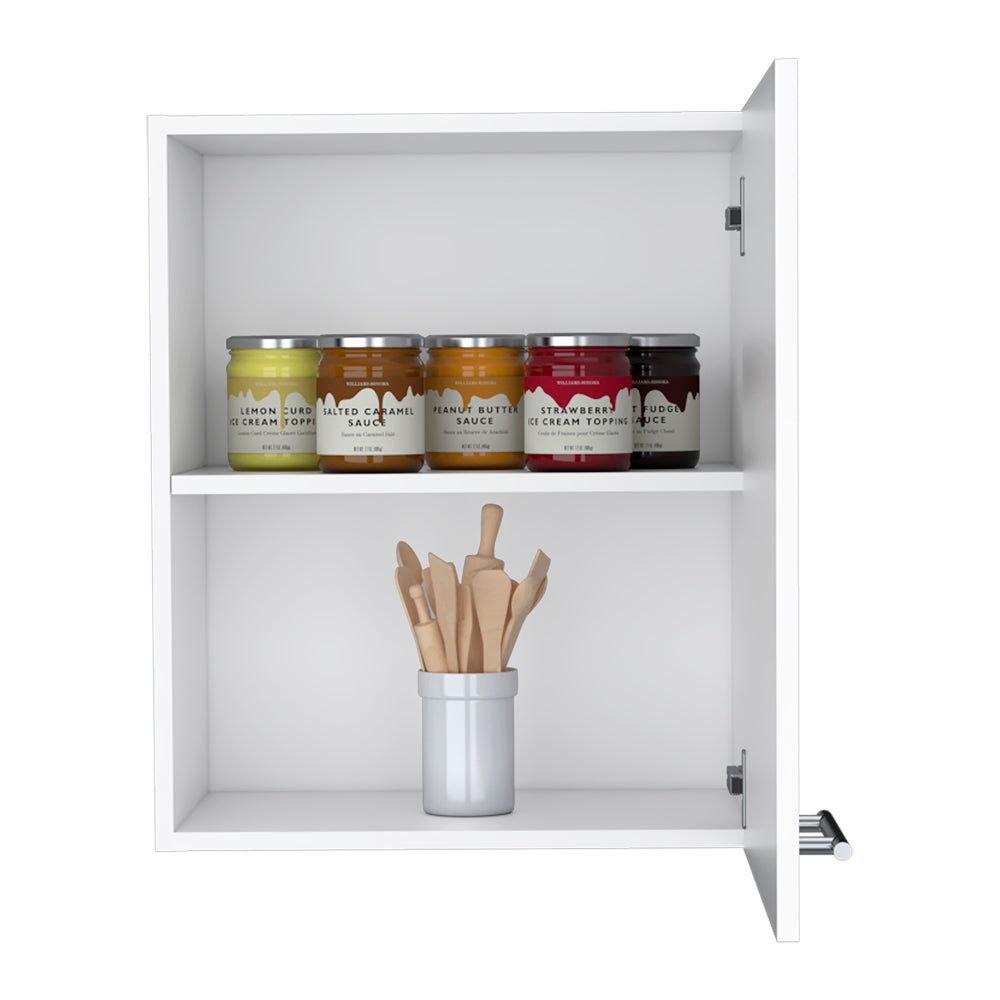 Upgrade your kitchen storage with the Wall Cabinet Dennard. Crafted from high-quality white manufactured wood, this wall-mounted cabinet is designed to provide both style and practicality. It features two spacious shelves (10.9"H x 18.5" W) behind a sturdy door with a sleek metal handle, offering ample space to store your kitchen essentials. The Wall Cabinet Dennard is perfect for keeping your kitchen organized while adding a modern touch to your decor.Dimensions: Height: 23.6'Width: 19.7' Depth: 13.1'Furniture Type: Ready to assemble (full assembly required).Certifications: CARB phase II compliant – TSCA Title VI Compliant.Warranty: 1-year warranty coverage in wooden parts- 1-year warranty coverage in hardware pieces since its manufacturing date is found in the lot number printed in the product box.Shipment details: Free shipping to the 48 contiguous states - delivery time: Between 2 and 5 days, depending on the customer's location, season, and weather factors.Other details: This product does not include decorative or background elements; Check that the box is in good condition and well packed and check with the help of the manual that the corresponding parts have been included; For more information regarding warranty, shipment details, cancellations, returns & replacement parts go to the bottom section of our website to learn more; Installation & Assembly Instructions included.