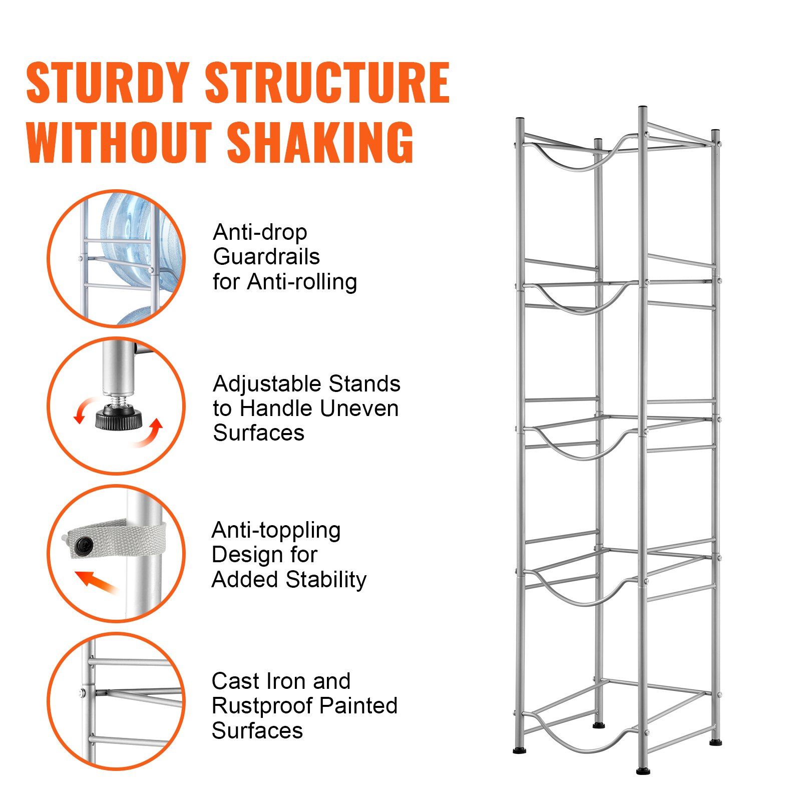 Home > VEVOR 5 Tiers Water Jug Holder Single Row Water Bottle Rack for 5 Bottles Silver
