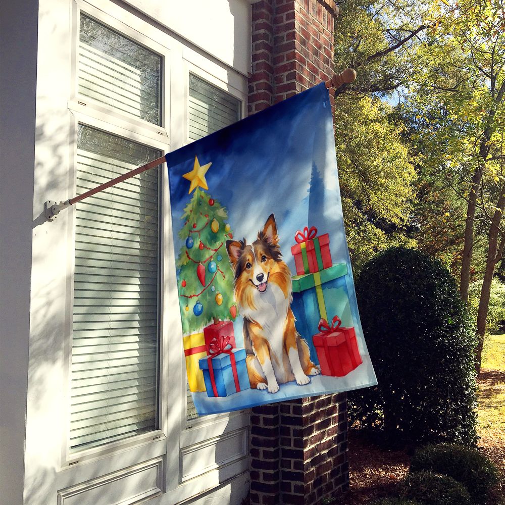 House Flag featuring breed specific Sheltie artwork. Celebrate Christmas with this Christmas Large Flag. Presenting our Heavy Duty Polyester House Size Decorative Sleeve Pole Flag, a vibrant addition to enhance the aesthetic appeal of your home. This large decorative flag, measuring approximately 28 x 40 inches, offers ample coverage and visibility. Each flag is meticulously sewn and made individually, ensuring a unique piece that may slightly vary in size. It's a sleeve pole flag, designed to fit a standard decorative flag pole effortlessly. Please note that the flag pole and bracket are not included and should be purchased separately. What sets our flag apart is its dual-sided print. The design is mirrored on both sides of the fabric, allowing for uniform visibility regardless of the angle. Printed in full color, our flag showcases vibrant hues that truly stand out. To ensure lasting vibrancy and durability, the dyes are heat-set into the fabric. This ensures your flag remains bright and captivating through various weather conditions. Elevate the look of your home with our Heavy Duty Polyester House Size Decorative Sleeve Pole Flag!