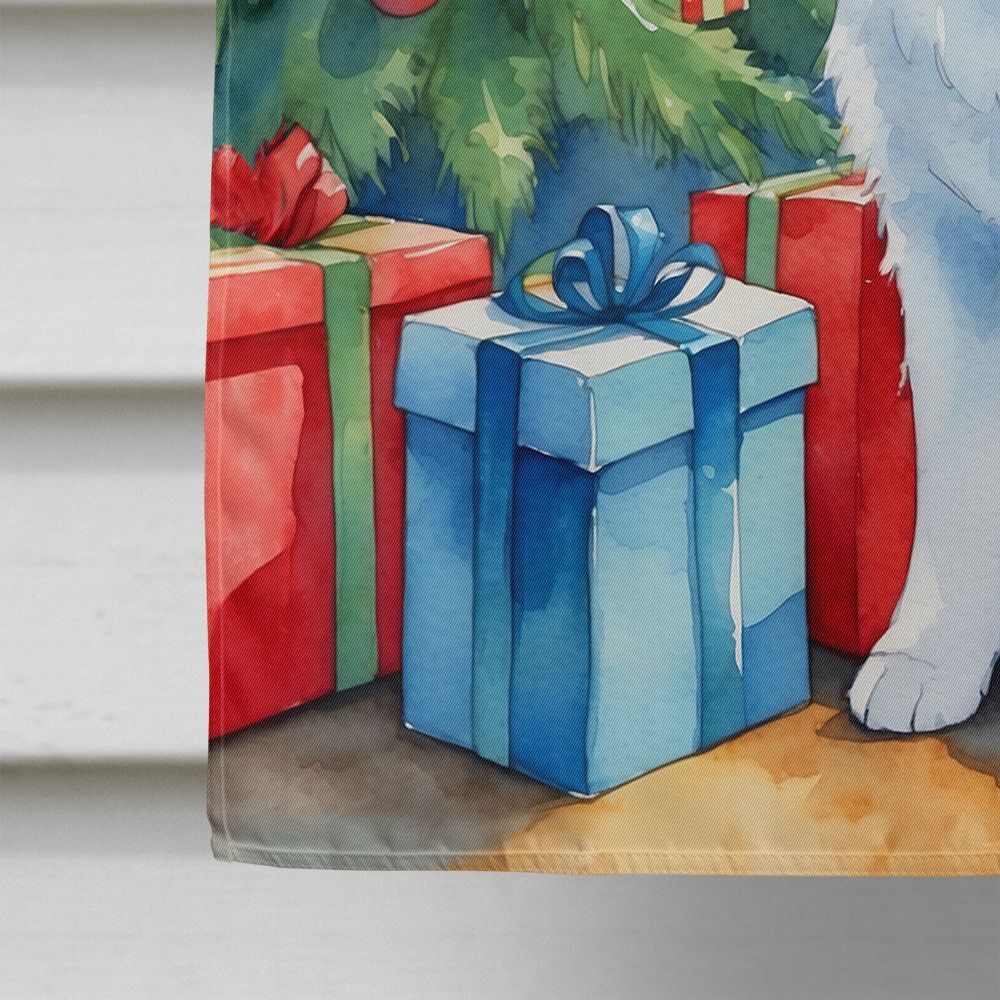 House Flag featuring breed specific Samoyed artwork. Celebrate Christmas with this Christmas Large Flag. Presenting our Heavy Duty Polyester House Size Decorative Sleeve Pole Flag, a vibrant addition to enhance the aesthetic appeal of your home. This large decorative flag, measuring approximately 28 x 40 inches, offers ample coverage and visibility. Each flag is meticulously sewn and made individually, ensuring a unique piece that may slightly vary in size. It's a sleeve pole flag, designed to fit a standard decorative flag pole effortlessly. Please note that the flag pole and bracket are not included and should be purchased separately. What sets our flag apart is its dual-sided print. The design is mirrored on both sides of the fabric, allowing for uniform visibility regardless of the angle. Printed in full color, our flag showcases vibrant hues that truly stand out. To ensure lasting vibrancy and durability, the dyes are heat-set into the fabric. This ensures your flag remains bright and captivating through various weather conditions. Elevate the look of your home with our Heavy Duty Polyester House Size Decorative Sleeve Pole Flag!