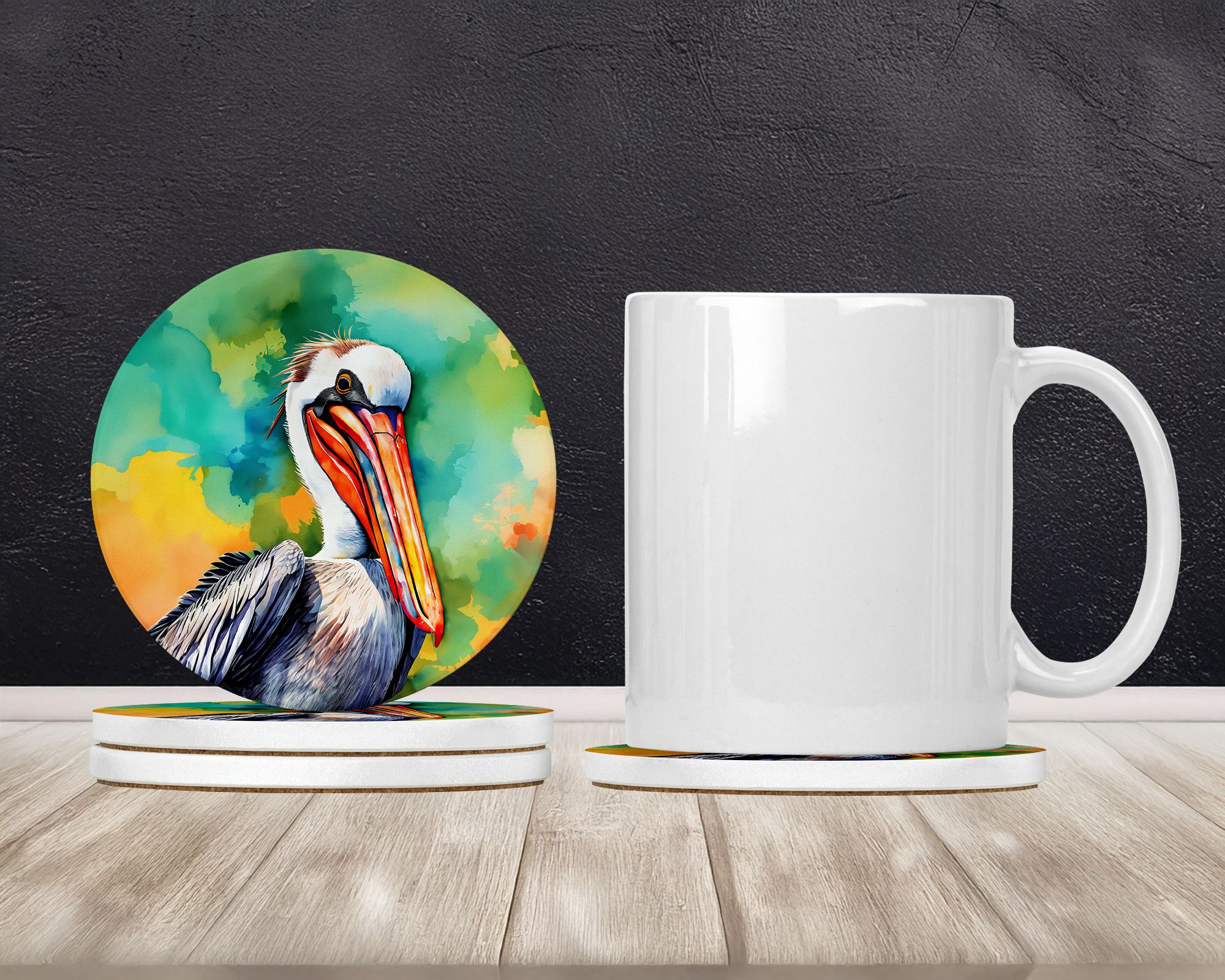Large Sandstone Coasters Pack of 4 featuring breed specific Pelican artwork. Introducing Caroline's Treasures Large Sandstone Coasters Pack of 4, the perfect addition to your home decor. Each coaster measures nearly 4 inches and is made from absorbent sandstone with a cork backing. Designed and printed in the United States, these coasters feature artwork from Caroline's Treasures' talented artists. Protect your countertops and tables from hot and cold drink condensation with these absorbent coasters. They efficiently absorb moisture, ensuring your surfaces stay dry and clean. Choose from a wide range of designs to update and enhance your decor or give them as a thoughtful gift for any occasion. Cleaning is a breeze�simply wipe the coaster with a damp towel to remove any spills or stains. Each set comes in a brown gift box, making it ready to be wrapped for that special person in your life. These absorbent sandstone coasters also make an excellent housewarming gift, providing both practicality and style. Celebrate birthdays, Mother's Day, Father's Day, Thanksgiving, Christmas, Teacher's Appreciation Day, or simply show someone you care with these versatile and charming coasters. Caroline's Treasures Large Sandstone Coasters Pack of 4 is the perfect happy gift for any occasion.