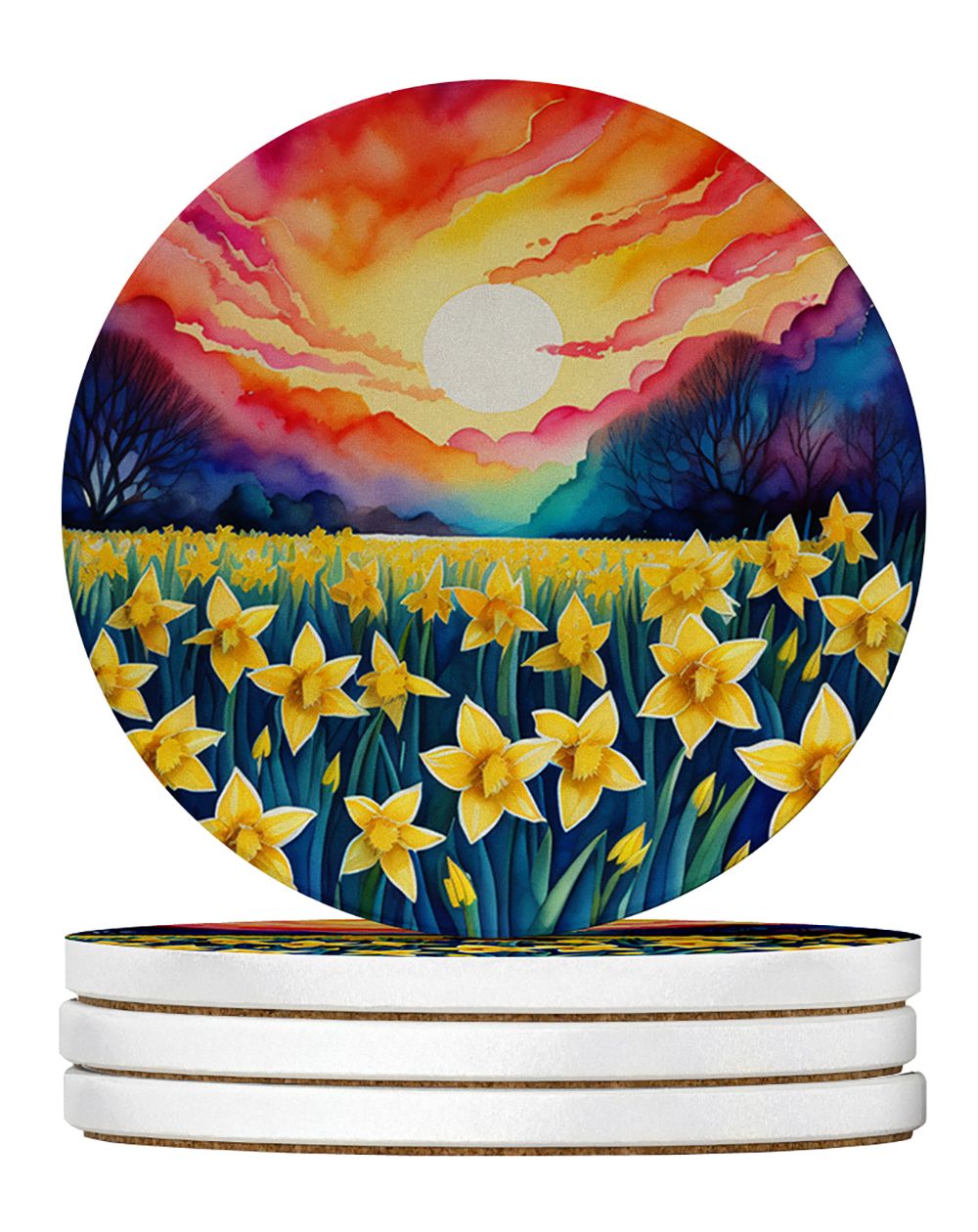 Home > Colorful Daffodils Large Sandstone Coasters Pack of 4 Absorbent Round Coasters Decor Gifts for Men or Women, 4 in, Multicolor