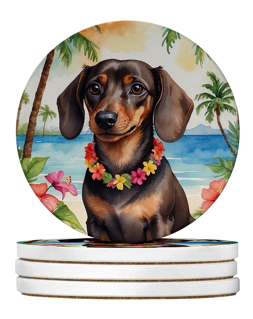 Dachshund Luau Large Sandstone Coasters Pack of 4 Absorbent Round Coasters Decor Gifts for Men or Women, 4 in, Multicolor