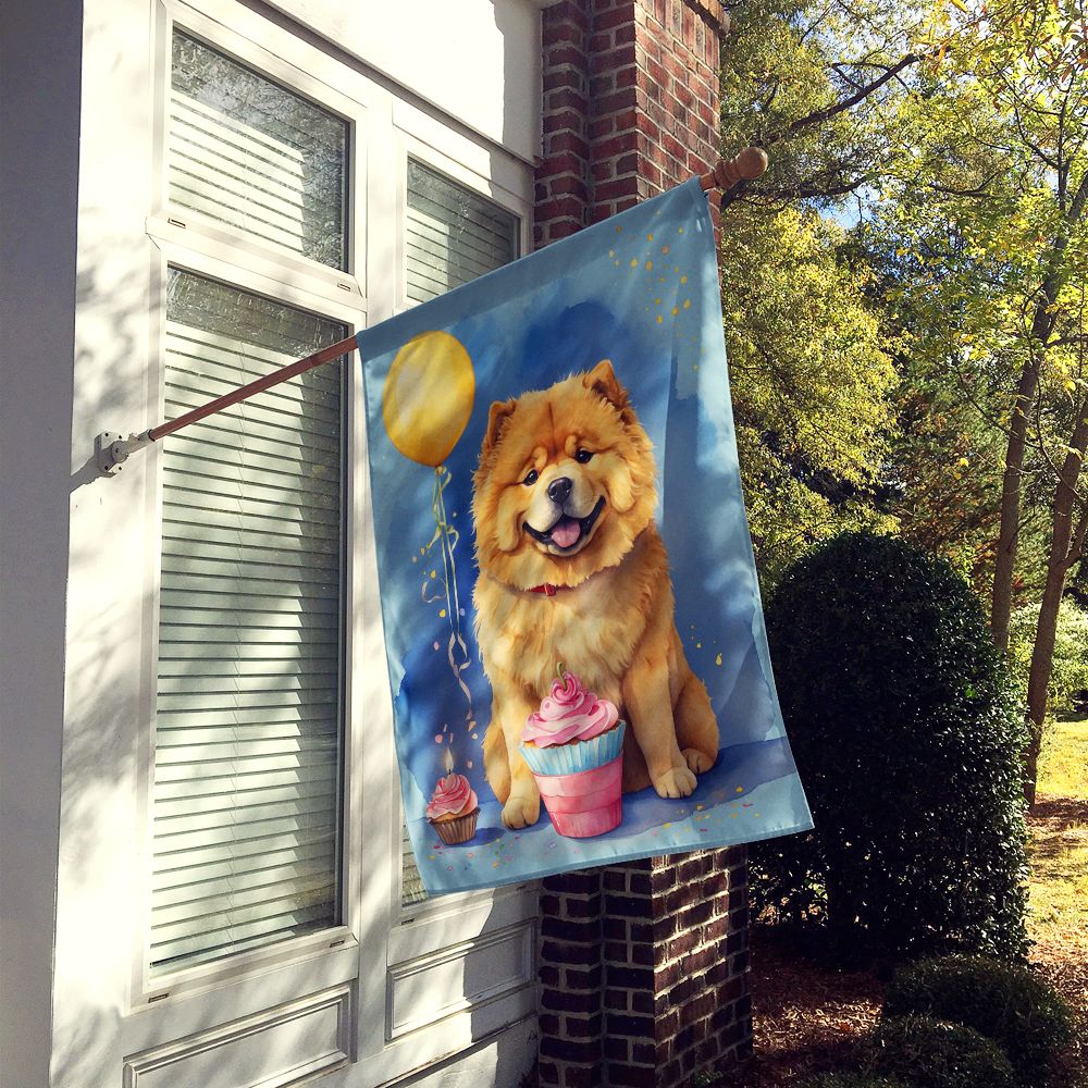 Chow Chow Happy Birthday House Flag Large Porch Sleeve Pole Decorative Outside Yard Banner Artwork Wall Hanging, Polyester, House Size, Multicolor